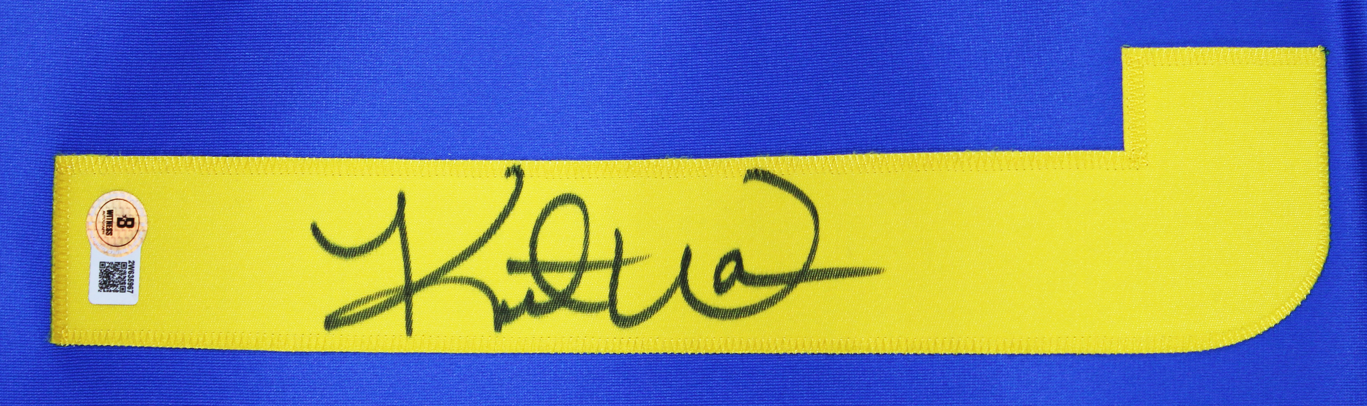 This Autographed Blue Nike Game Jersey has been Personally Signed by Kurt Warner of the Los Angeles Rams. This item is 100% Authentic to include a hologram by Beckett Authentication Services. This item will come with an affixed Beckett Authentication Services (BAS) authentication sticker, which includes a scannable QR code to verify authenticity. Please note that Beckett no longer provides serial-numbered COA cards, and the attached BAS sticker will serve as the complete authentication for this item. This is a BAS Witnessed Protection Program item which means a Beckett Authentication Service representative was present when this item was being signed. We conducted an autograph signing with Kurt Warner where multiples of the same item were signed. While the photographs are representative of this item, the size, placement and strength of the signature may vary. Each item is hand signed, therefore, each autograph is unique. This item can be verified through BAS Witnessed. Multiple sizes available. Reach out for availability.