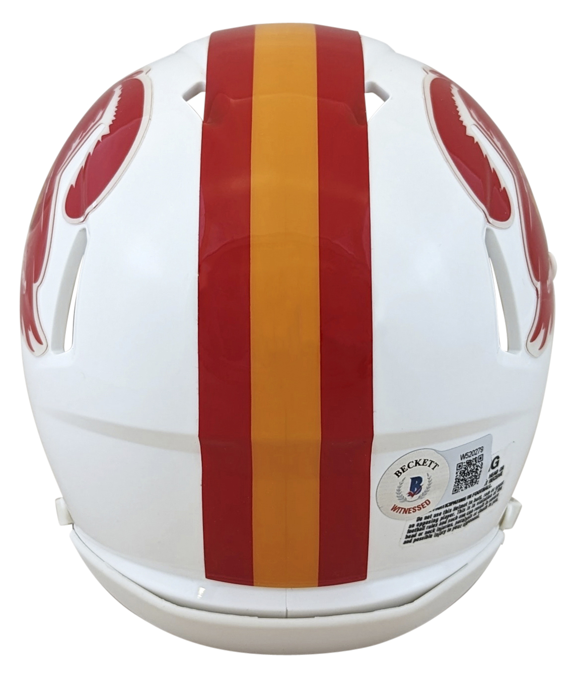 This Autographed 1976-96 Throwback Speed Mini Helmet W/ Uv Mirrored Back Acrylic Display Case with the inscription of "A-Train" has been Personally Signed by Mike Alstott of the Tampa Bay Buccaneers. This item is 100% Authentic to include a hologram by Beckett Authentication Services. This item will come with an affixed Beckett Authentication Services (BAS) authentication sticker, which includes a scannable QR code to verify authenticity. Please note that Beckett no longer provides serial-numbered COA cards, and the attached BAS sticker will serve as the complete authentication for this item. This is a BAS Witnessed Protection Program item which means a Beckett Authentication Service representative was present when this item was being signed. We conducted an autograph signing with Mike Alstott where multiples of the same item were signed. While the photographs are representative of this item, the size, placement and strength of the signature may vary. Each item is hand signed, therefore, each autograph is unique. This item can be verified through BAS Witnessed.
