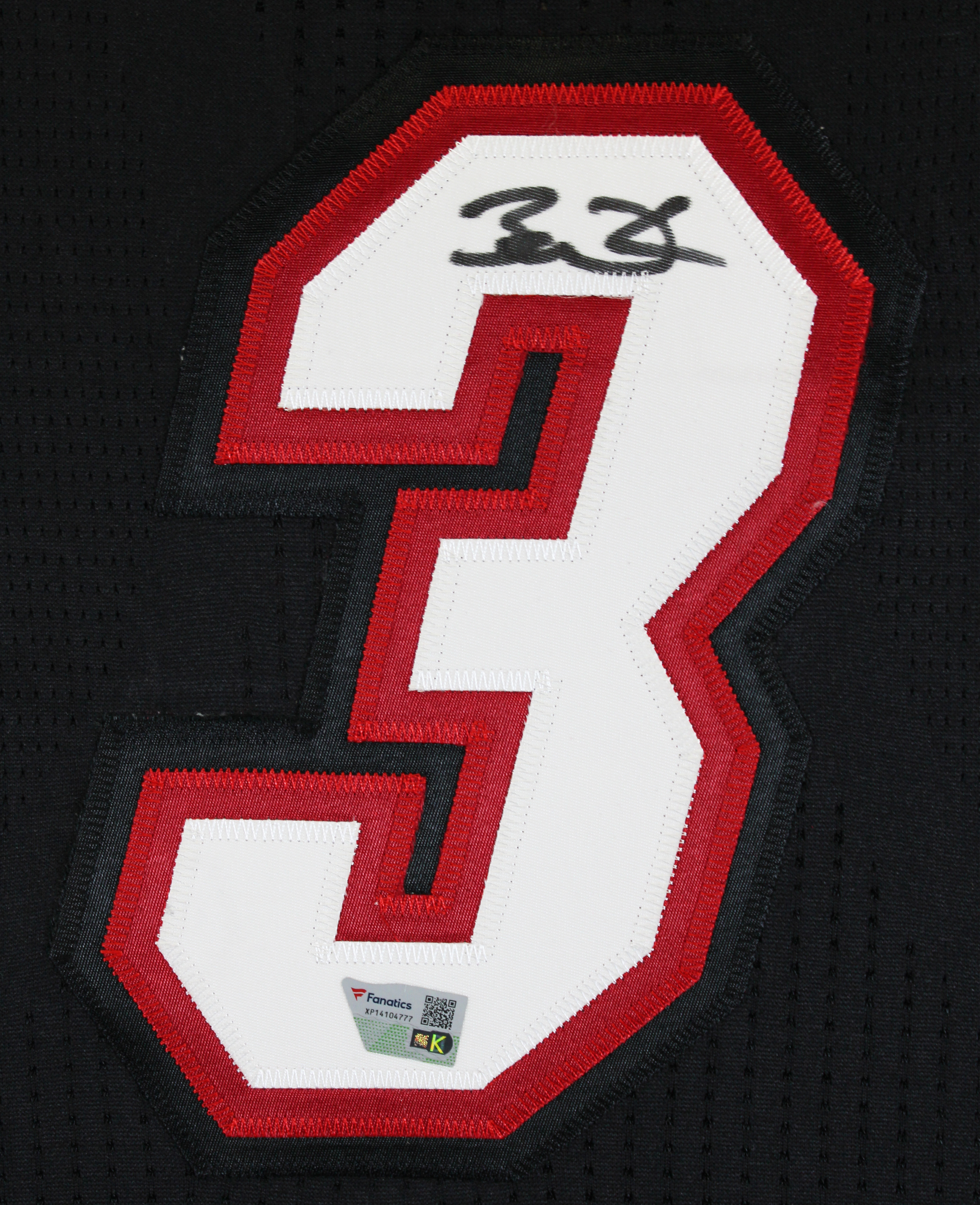 This Autographed 2012-13 Finals Black Mitchell & Ness Authentic Jersey has been Personally Signed by Dwyane Wade of the Miami Heat . This item is 100% Authentic to includes a numbered hologram by Fanatics. We have multiples of this same item. While the photographs are representative of this item, the size, placement and strength of the signature may vary. Each item is hand signed, therefore, each autograph is unique. Multiple sizes available. Reach out for availability. The signature has bled on these jerseys, please refer to photos prior to purchase.