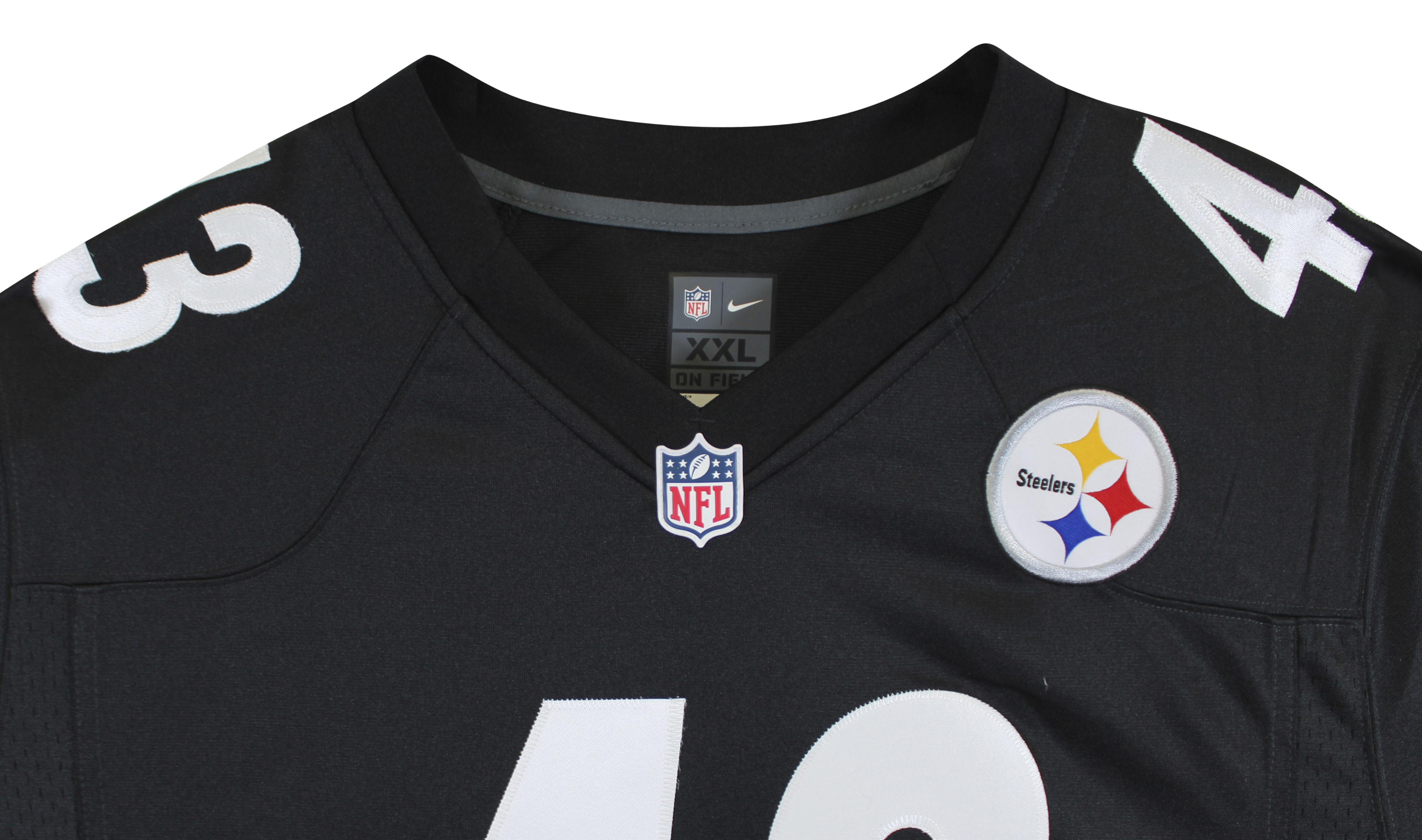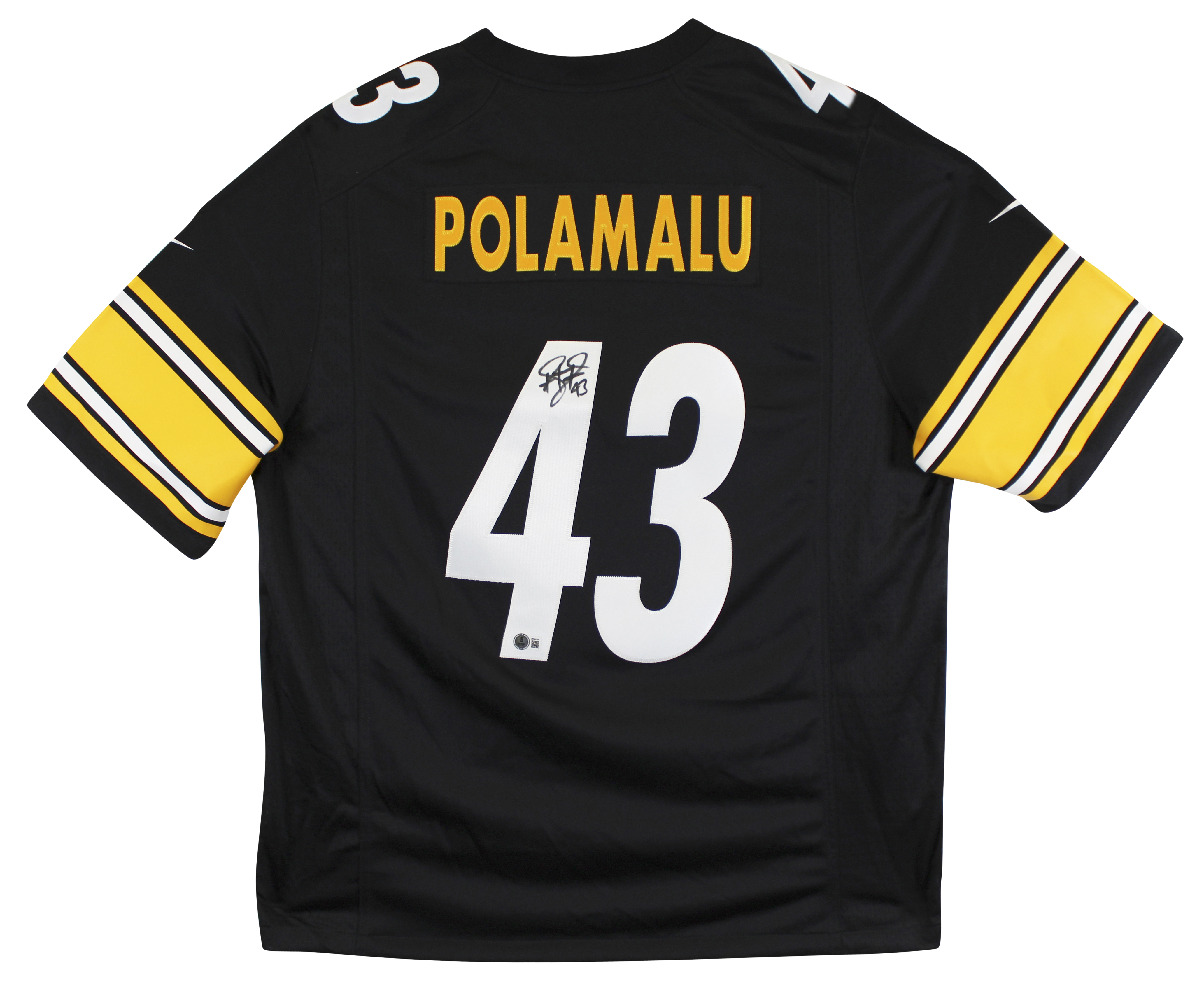 This Autographed Black Nike Limited Jersey has been Personally Signed by Troy Polamalu of the Pittsburgh Steelers. This item is 100% Authentic to include a hologram by Beckett Authentication Services. This item will come with the new Beckett Authentication hologram that has a scannable QR code rather than the traditional COA. If you would like to have a COA, you are welcome to reach out to Beckett for a printed certification once you receive your item. This is a BAS Witnessed Protection Program item which means a Beckett Authentication Service representative was present when this item was being signed. We conducted an autograph signing with Troy Polamalu where multiples of the same item were signed. While the photographs are representative of this item, the size, placement and strength of the signature may vary. Each item is hand signed, therefore, each autograph is unique. This item can be verified through BAS Witnessed. Multiple sizes available. Reach out for availability.