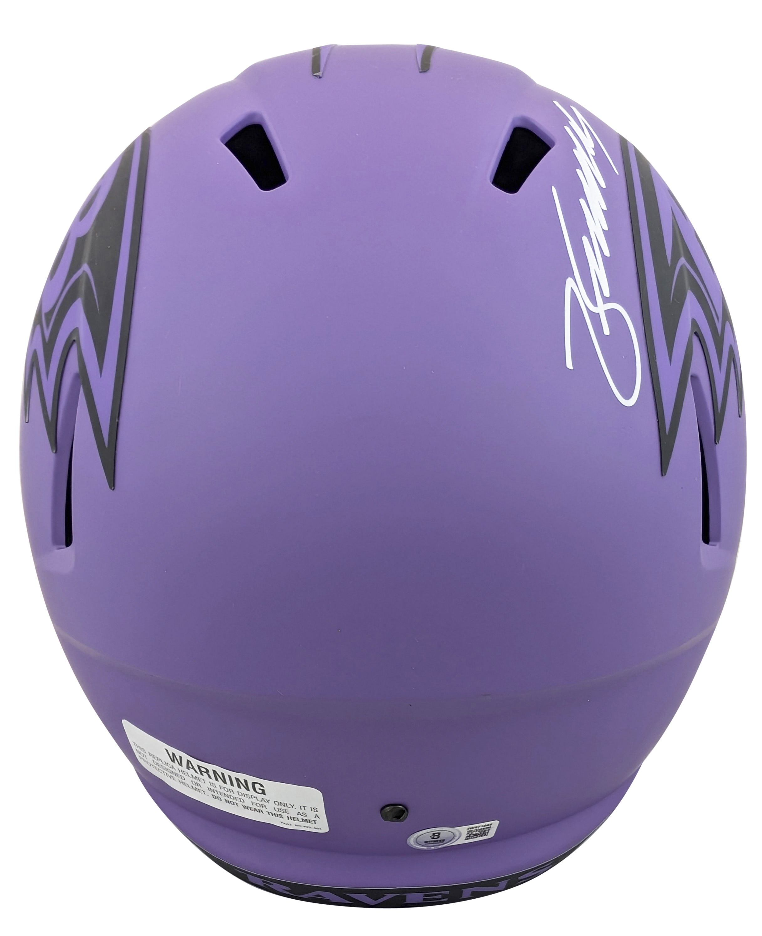 This Autographed Authentic Full Size Speed Rep Helmet has been Personally Signed by Zay Flowers of the Baltimore Ravens. This item is 100% Authentic to include a hologram by Beckett Authentication Services. This item will come with an affixed Beckett Authentication Services (BAS) authentication sticker, which includes a scannable QR code to verify authenticity. Please note that Beckett no longer provides serial-numbered COA cards, and the attached BAS sticker will serve as the complete authentication for this item. This is a BAS Witnessed Protection Program item which means a Beckett Authentication Service representative was present when this item was being signed. We conducted an autograph signing with Zay Flowers where multiples of the same item were signed. While the photographs are representative of this item, the size, placement and strength of the signature may vary. Each item is hand signed, therefore, each autograph is unique. This item can be verified through BAS Witnessed.