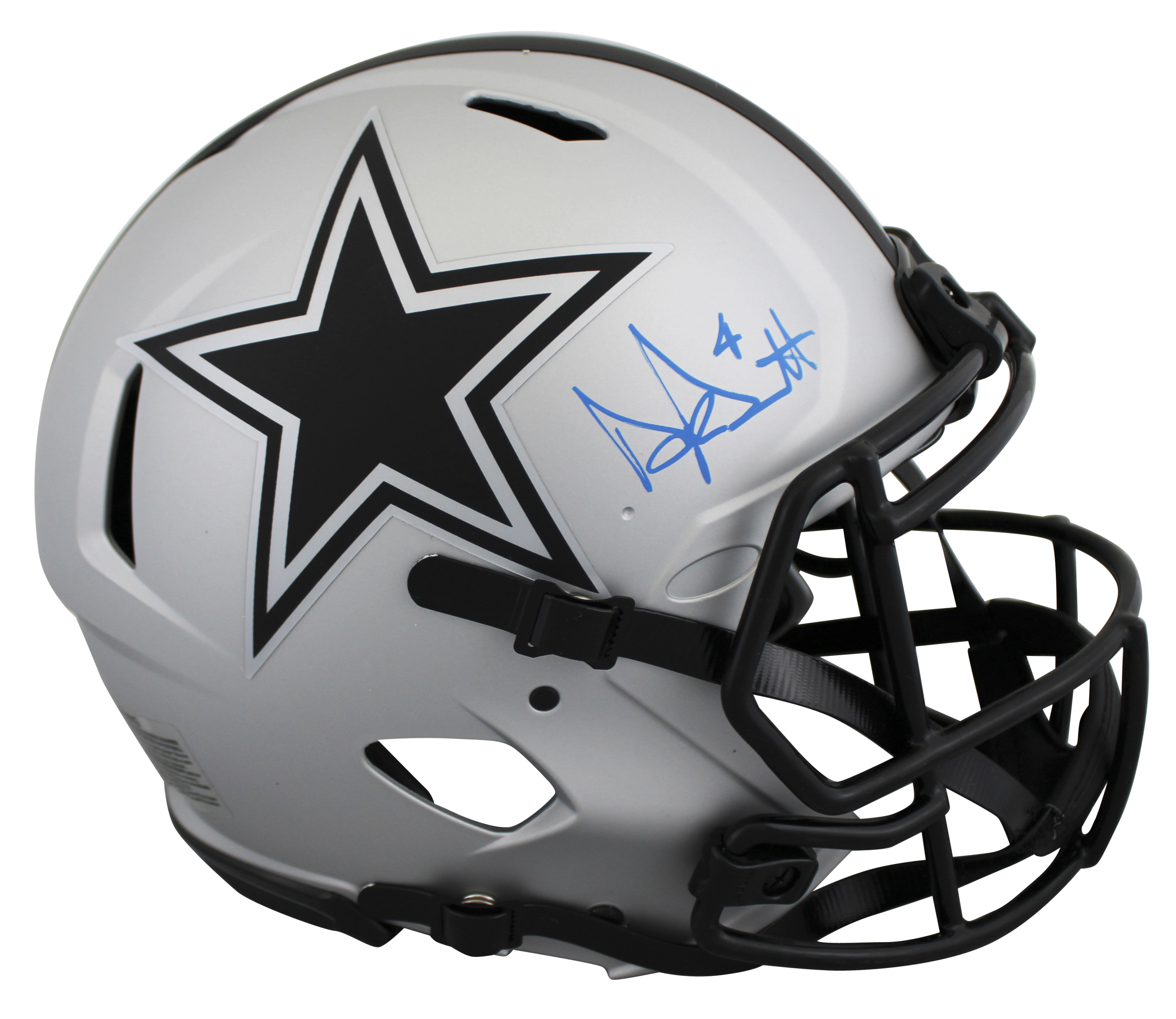 Cowboys Dak Prescott Signed Rave Full Size Speed Proline Helmet W/ Case BAS Wit
