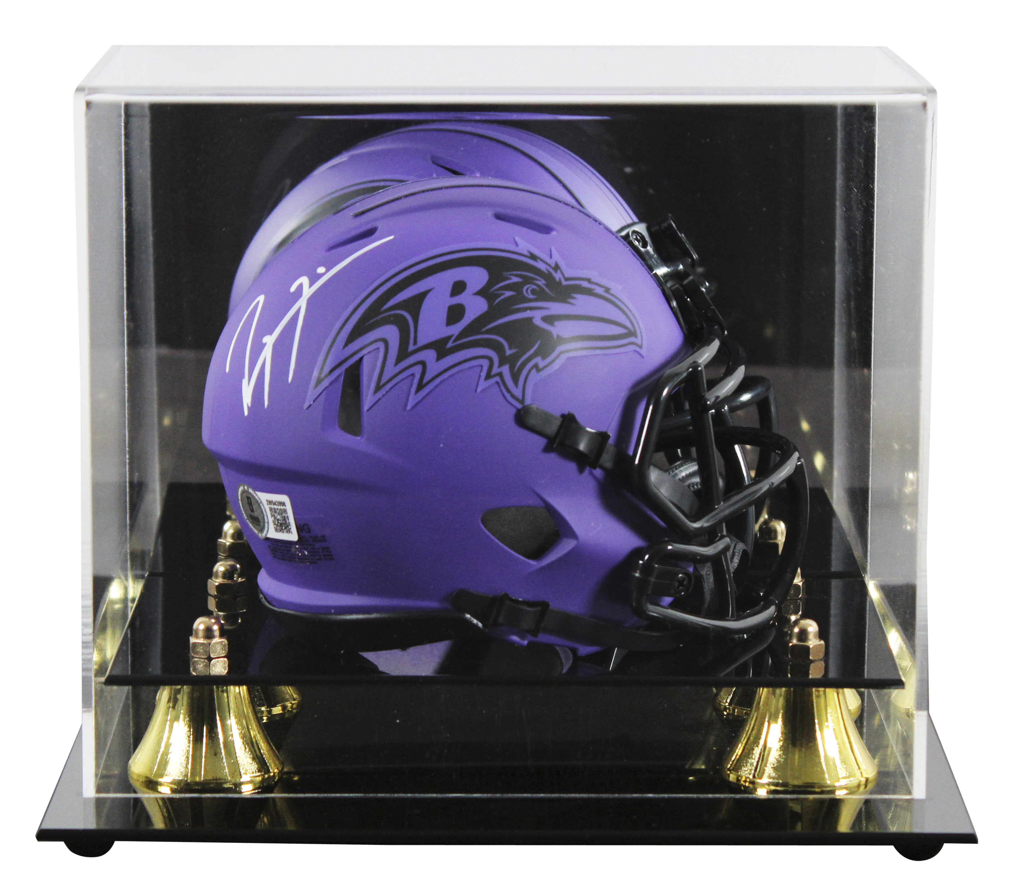 This Autographed Alternate Rave Speed Mini Helmet W/ Uv Mirrored Back Acrylic Display Case has been Personally Signed by Ray Lewis of the Baltimore Ravens. This item is 100% Authentic to include a hologram by Beckett Authentication Services. This item will come with an affixed Beckett Authentication Services (BAS) authentication sticker, which includes a scannable QR code to verify authenticity. Please note that Beckett no longer provides serial-numbered COA cards, and the attached BAS sticker will serve as the complete authentication for this item. This is a BAS Witnessed Protection Program item which means a Beckett Authentication Service representative was present when this item was being signed. We conducted an autograph signing with Ray Lewis where multiples of the same item were signed. While the photographs are representative of this item, the size, placement and strength of the signature may vary. Each item is hand signed, therefore, each autograph is unique. This item can be verified through BAS Witnessed.