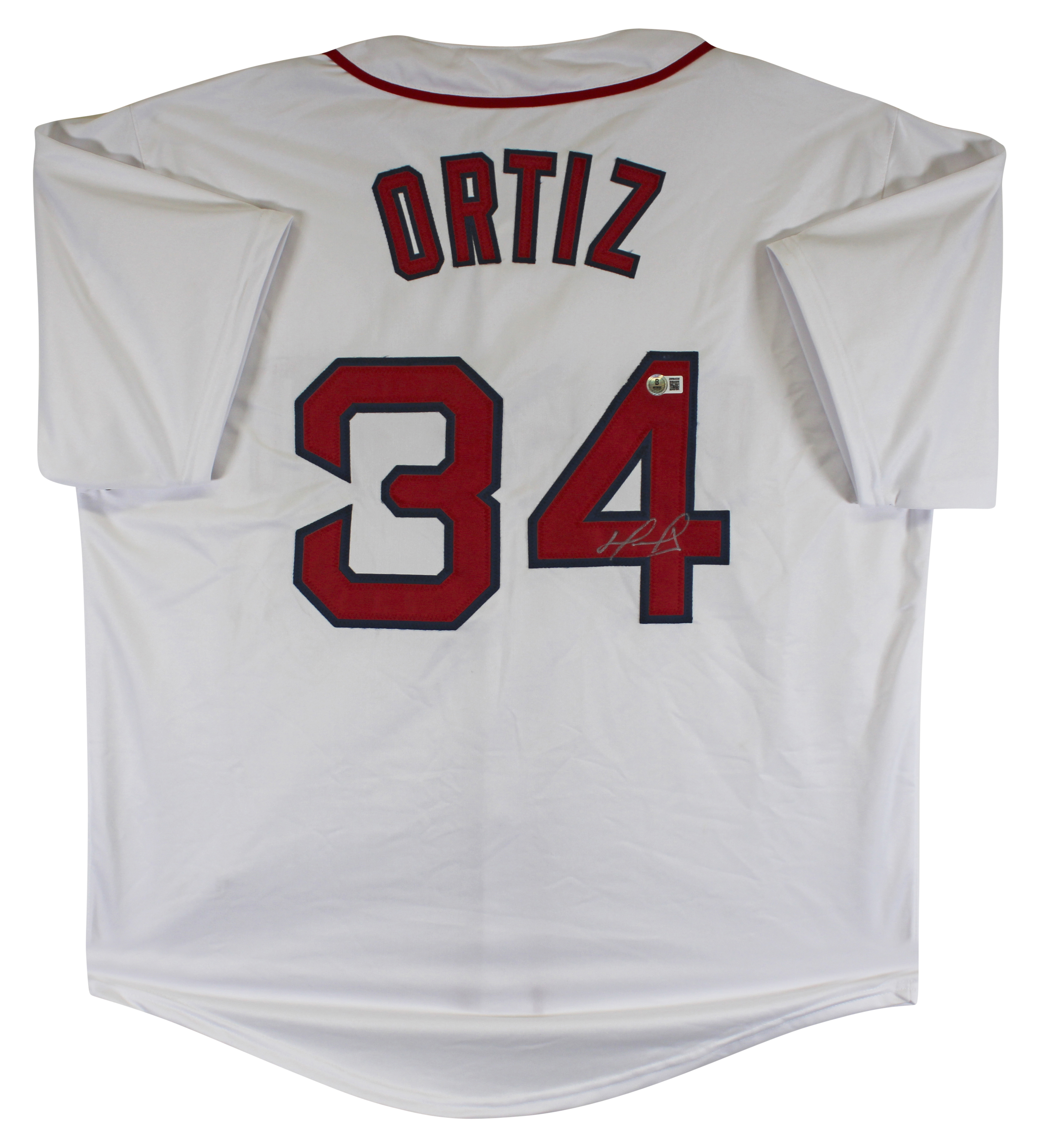 This Autographed White Pro Style Jersey has been Personally Signed by David Ortiz of the Boston Red Sox. This item is 100% Authentic to include a hologram by Beckett Authentication Services. This item will come with an affixed Beckett Authentication Services (BAS) authentication sticker, which includes a scannable QR code to verify authenticity. Please note that Beckett no longer provides serial-numbered COA cards, and the attached BAS sticker will serve as the complete authentication for this item. This is a BAS Witnessed Protection Program item which means a Beckett Authentication Service representative was present when this item was being signed. We conducted an autograph signing with David Ortiz where multiples of the same item were signed. While the photographs are representative of this item, the size, placement and strength of the signature may vary. Each item is hand signed, therefore, each autograph is unique. This item can be verified through BAS Witnessed. This is a X-Large sized, non-branded, custom-stitched Jersey.