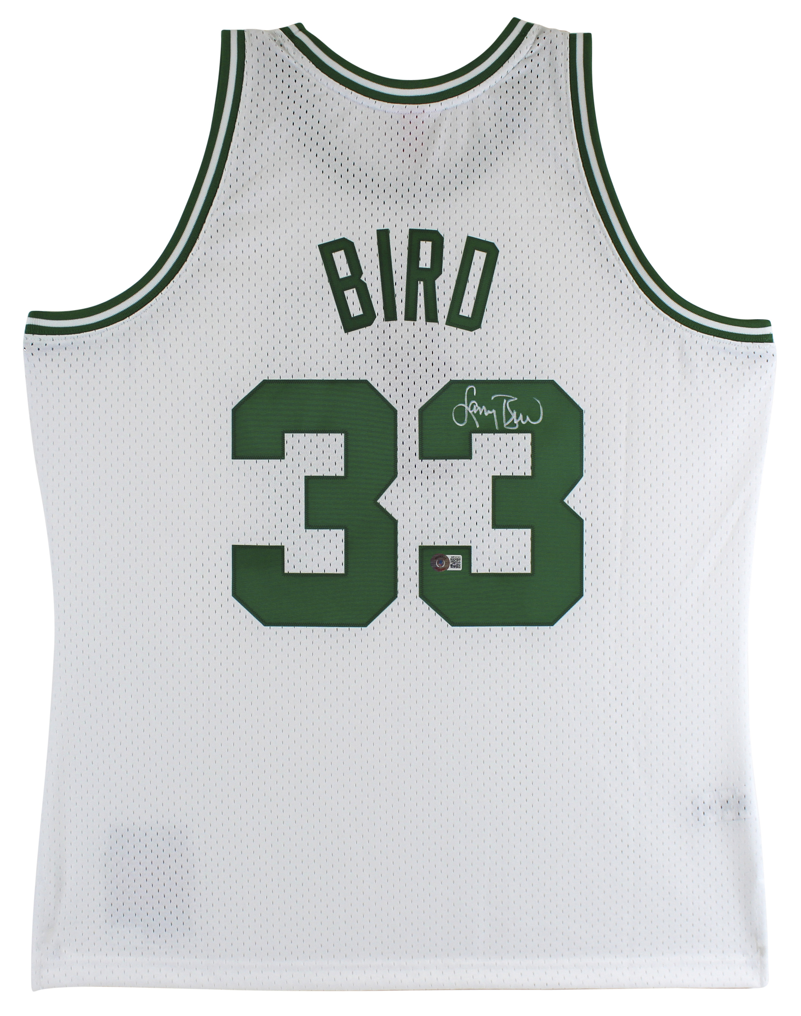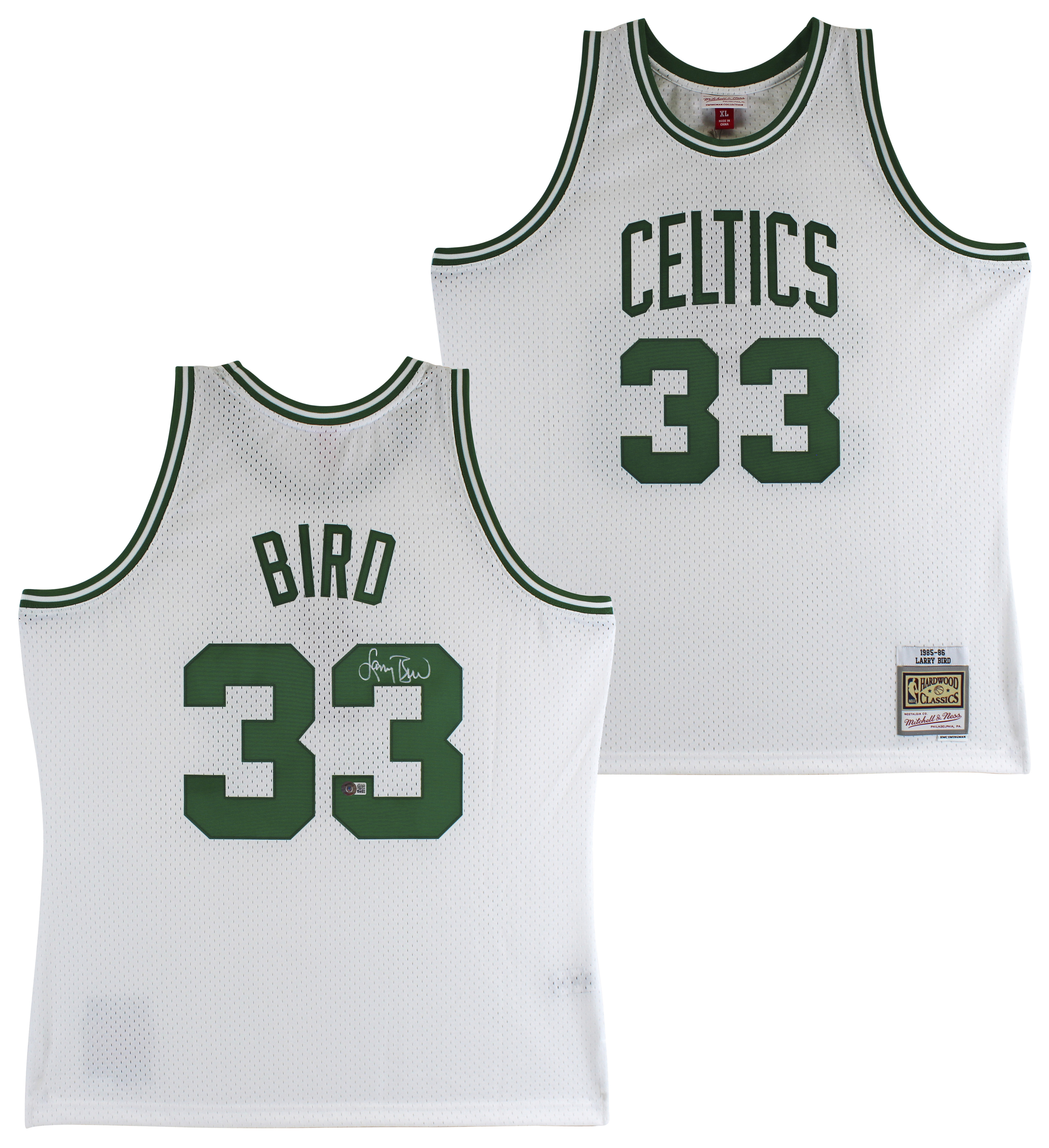 This Autographed 1985 White Mitchell & Ness Hardwood Classics Swingman Jersey has been Personally Signed by Larry Bird. This item is 100% Authentic to include a hologram by Beckett Authentication Services. This item will come with an affixed Beckett Authentication Services (BAS) authentication sticker, which includes a scannable QR code to verify authenticity. Please note that Beckett no longer provides serial-numbered COA cards, and the attached BAS sticker will serve as the complete authentication for this item. This is a BAS Witnessed Protection Program item which means a Beckett Authentication Service representative was present when this item was being signed. We conducted an autograph signing with Larry Bird where multiples of the same item were signed. While the photographs are representative of this item, the size, placement and strength of the signature may vary. Each item is hand signed, therefore, each autograph is unique. This item can be verified through BAS Witnessed. This is a X-Large sized Jersey.