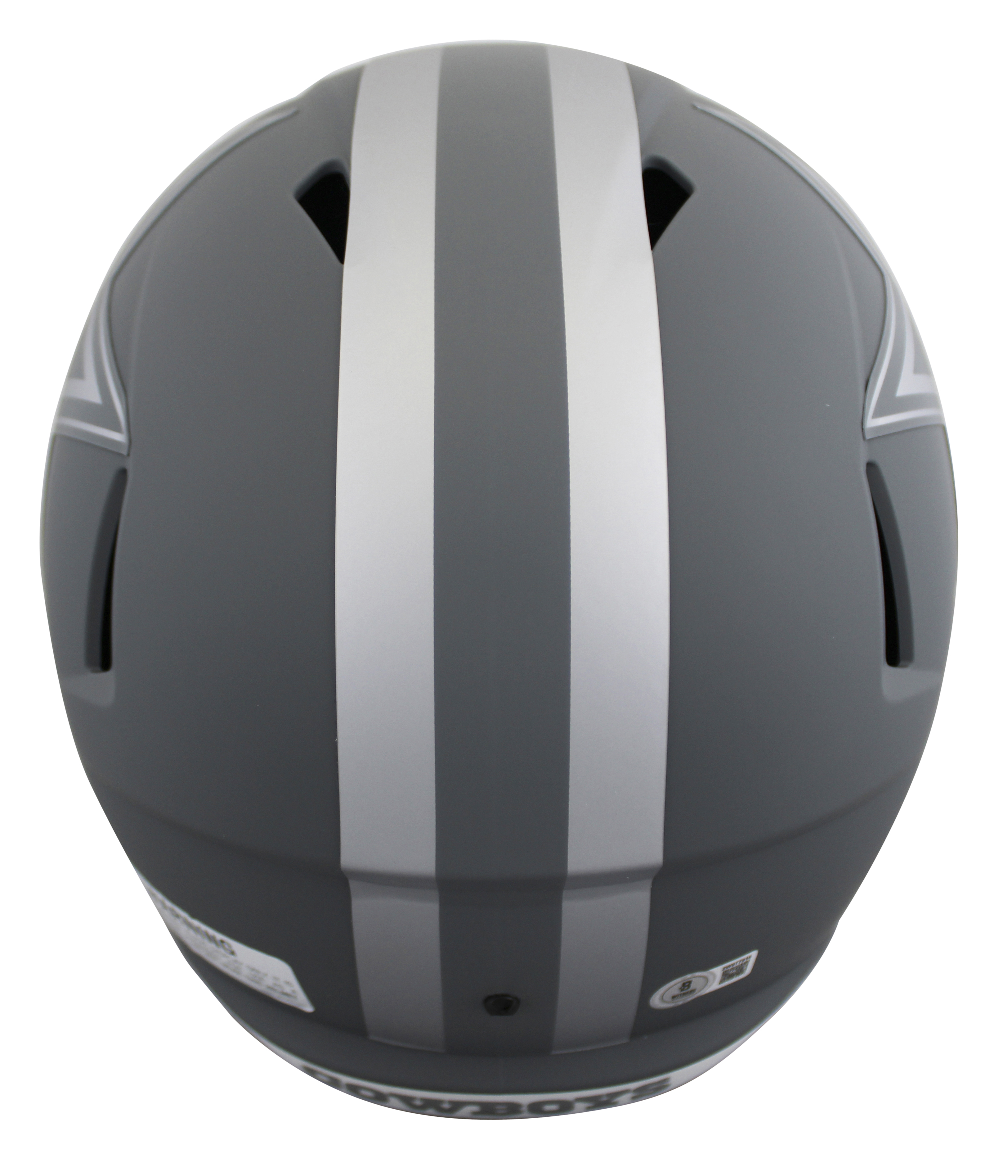 This Autographed Alternate Slate Riddell Full Size Speed Rep Helmet W/ Uv Mirrored Back Acrylic Display Case has been Personally Signed by Dak Prescott of the Dallas Cowboys. This item is 100% Authentic to include a hologram by Beckett Authentication Services. This item will come with an affixed Beckett Authentication Services (BAS) authentication sticker, which includes a scannable QR code to verify authenticity. Please note that Beckett no longer provides serial-numbered COA cards, and the attached BAS sticker will serve as the complete authentication for this item. This is a BAS Witnessed Protection Program item which means a Beckett Authentication Service representative was present when this item was being signed. We conducted an autograph signing with Dak Prescott where multiples of the same item were signed. While the photographs are representative of this item, the size, placement and strength of the signature may vary. Each item is hand signed, therefore, each autograph is unique. This item can be verified through BAS Witnessed.