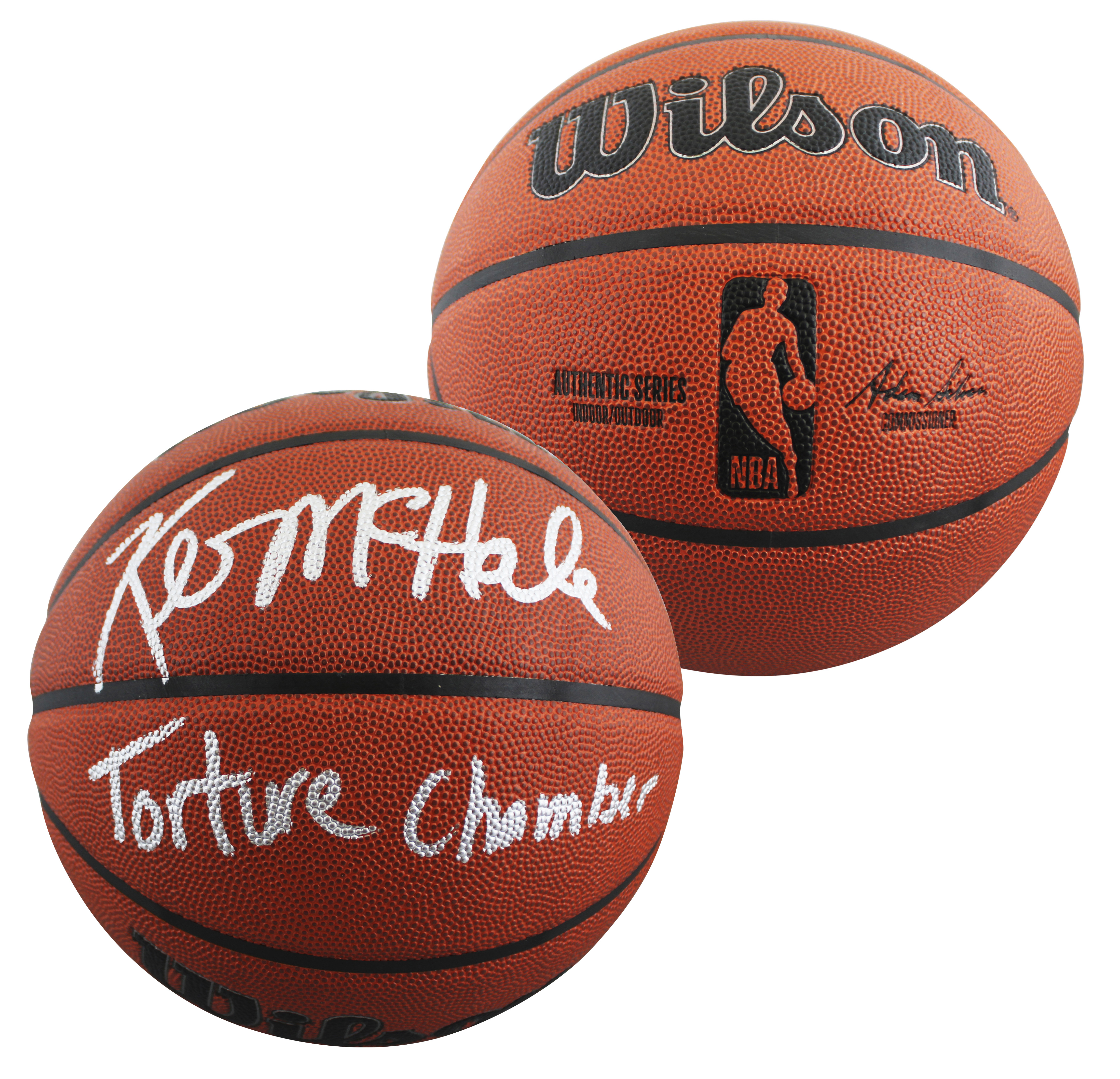 This Autographed Wilson Indoor/Outdoor Basketball with the inscription of "Torture Chamber" has been Personally Signed by Kevin McHale of the Boston Celtics. This item is 100% Authentic to include a hologram by Beckett Authentication Services. This item will come with an affixed Beckett Authentication Services (BAS) authentication sticker, which includes a scannable QR code to verify authenticity. Please note that Beckett no longer provides serial-numbered COA cards, and the attached BAS sticker will serve as the complete authentication for this item. This is a BAS Witnessed Protection Program item which means a Beckett Authentication Service representative was present when this item was being signed. We conducted an autograph signing with Kevin McHale where multiples of the same item were signed. While the photographs are representative of this item, the size, placement and strength of the signature may vary. Each item is hand signed, therefore, each autograph is unique. This item can be verified through BAS Witnessed.