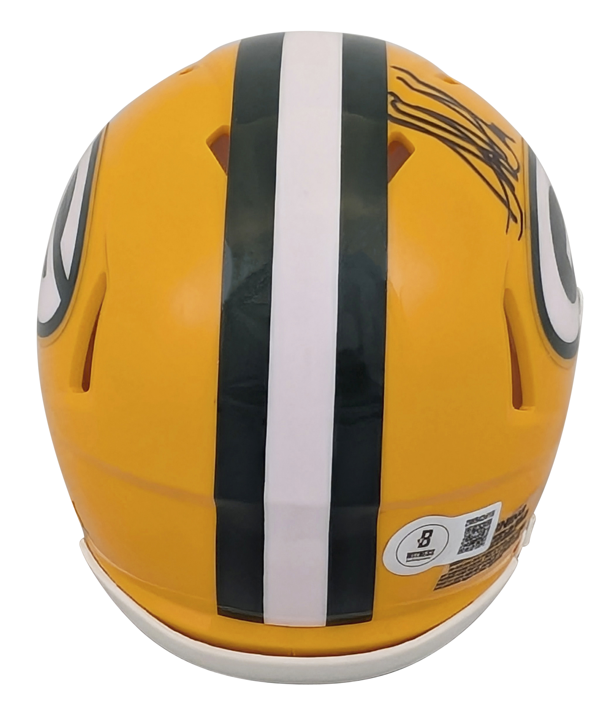 This Autographed Speed Mini Helmet has been Personally Signed by Sterling Sharpe of the Green Bay Packers. This item is 100% Authentic to include a hologram by Beckett Authentication Services. This item will come with the new Beckett Authentication hologram that has a scannable QR code rather than the traditional COA. If you would like to have a COA, you are welcome to reach out to Beckett for a printed certification once you receive your item. This is a BAS Witnessed Protection Program item which means a Beckett Authentication Service representative was present when this item was being signed. We conducted an autograph signing with Sterling Sharpe where multiples of the same item were signed. While the photographs are representative of this item, the size, placement and strength of the signature may vary. Each item is hand signed, therefore, each autograph is unique. This item can be verified through BAS Witnessed.