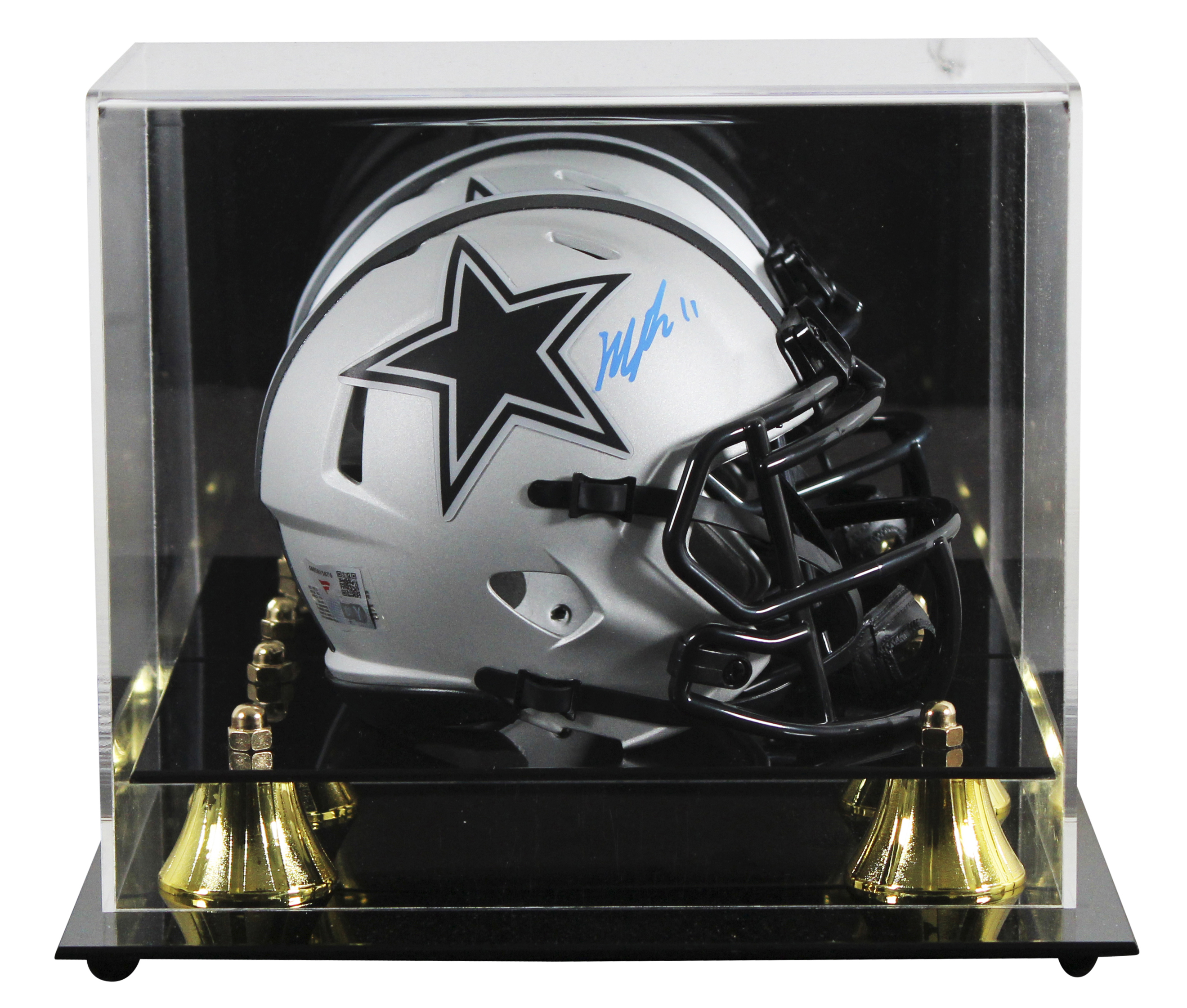 This Autographed Alternate Rave Speed Mini Helmet W/ Uv Mirrored Back Acrylic Display Case has been Personally Signed by Micah Parsons of the Dallas Cowboys. This item is 100% Authentic to includes a numbered hologram by Fanatics. We conducted an autograph signing with Micah Parsons where multiples of the same item were signed. While the photographs are representative of this item, the size, placement and strength of the signature may vary. Each item is hand signed, therefore, each autograph is unique. This item can be verified through Fanatics.
