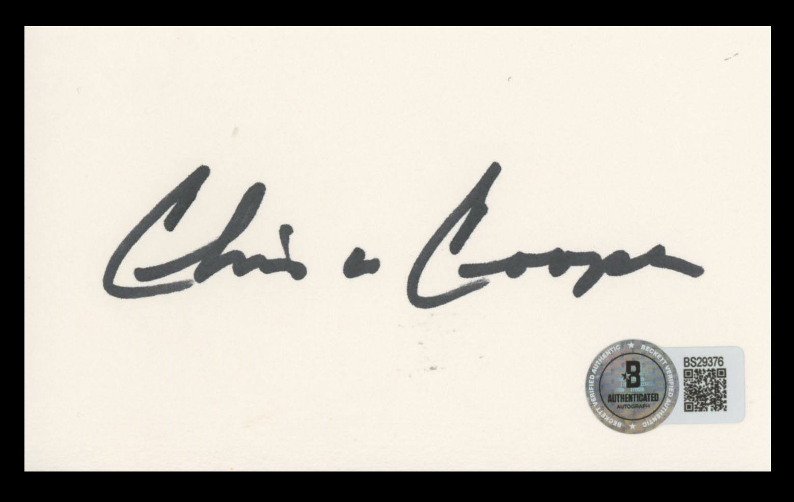 This Autographed 3x5 Index Card has been Personally Signed by Chris Cooper of The Town. This item is 100% Authentic to include a hologram by Beckett Authentication Services. This item will come with an affixed Beckett Authentication Services (BAS) authentication sticker, which includes a scannable QR code to verify authenticity. Please note that Beckett no longer provides serial-numbered COA cards, and the attached BAS sticker will serve as the complete authentication for this item. The authenticity can be verified on Beckett Authentication Services website.