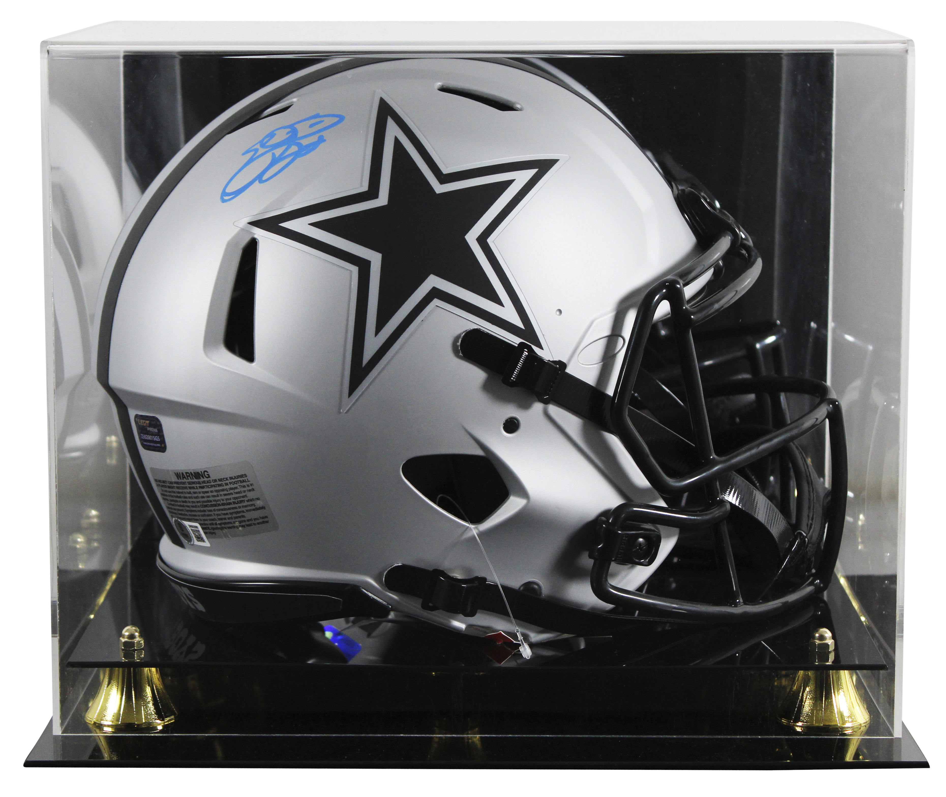 This Autographed Alternate Rave Riddell Full Size Speed Proline Helmet W/ Uv Mirrored Back Acrylic Display Case has been Personally Signed by Emmitt Smith of the Dallas Cowboys. This item is 100% Authentic to include a hologram by Beckett Authentication Services. This item will come with an affixed Beckett Authentication Services (BAS) authentication sticker, which includes a scannable QR code to verify authenticity. Please note that Beckett no longer provides serial-numbered COA cards, and the attached BAS sticker will serve as the complete authentication for this item. This is a BAS Witnessed Protection Program item which means a Beckett Authentication Service representative was present when this item was being signed. We conducted an autograph signing with Emmitt Smith where multiples of the same item were signed. While the photographs are representative of this item, the size, placement and strength of the signature may vary. Each item is hand signed, therefore, each autograph is unique. This item can be verified through BAS Witnessed.
