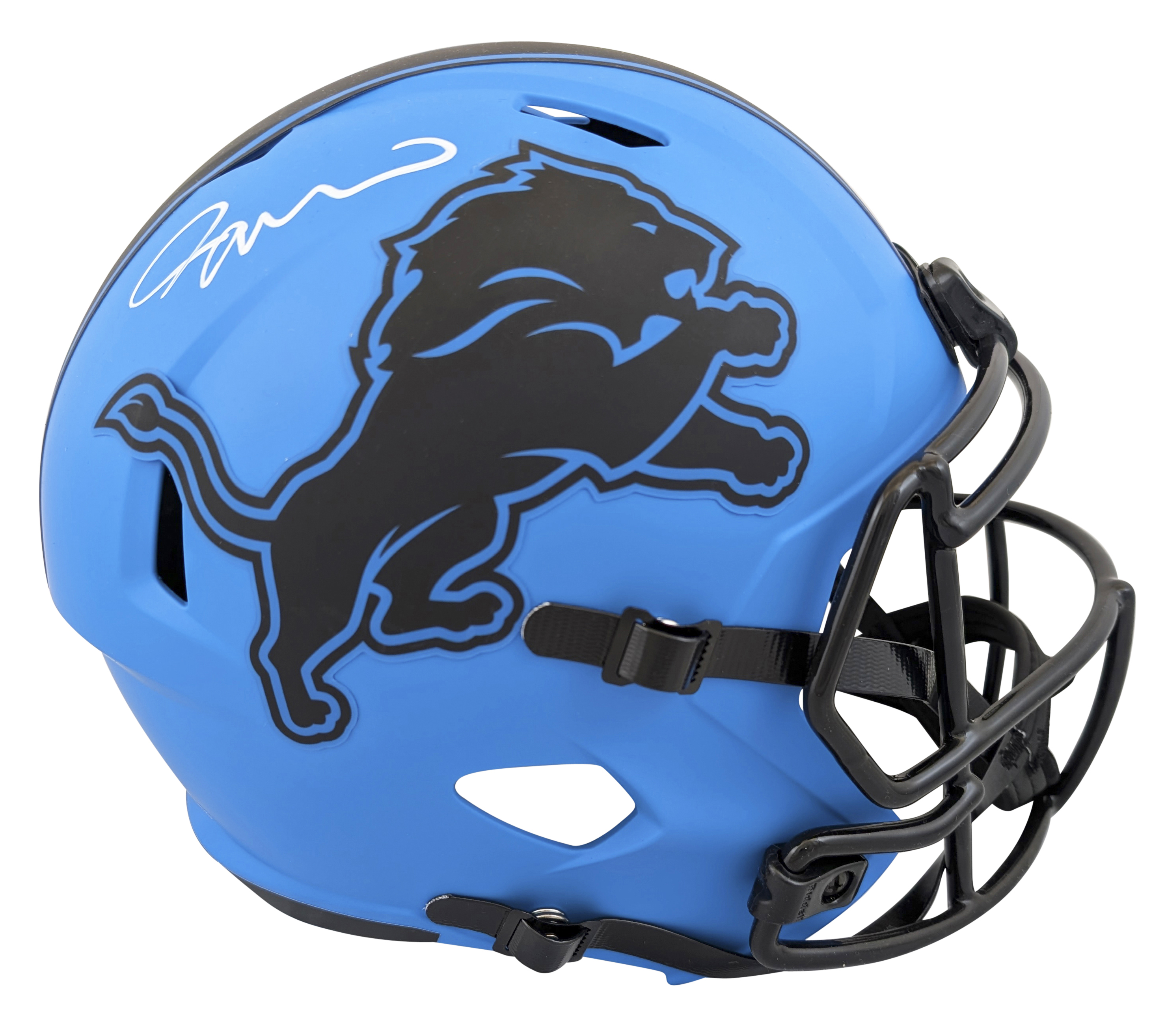 This Autographed Alternate Rave Riddell Full Size Speed Rep Helmet W/ Uv Mirrored Back Acrylic Display Case has been Personally Signed by Jameson Williams of the Detroit Lions. This item is 100% Authentic to include a hologram by Beckett Authentication Services. This item will come with an affixed Beckett Authentication Services (BAS) authentication sticker, which includes a scannable QR code to verify authenticity. Please note that Beckett no longer provides serial-numbered COA cards, and the attached BAS sticker will serve as the complete authentication for this item. This is a BAS Witnessed Protection Program item which means a Beckett Authentication Service representative was present when this item was being signed. We conducted an autograph signing with Jameson Williams where multiples of the same item were signed. While the photographs are representative of this item, the size, placement and strength of the signature may vary. Each item is hand signed, therefore, each autograph is unique. This item can be verified through BAS Witnessed.