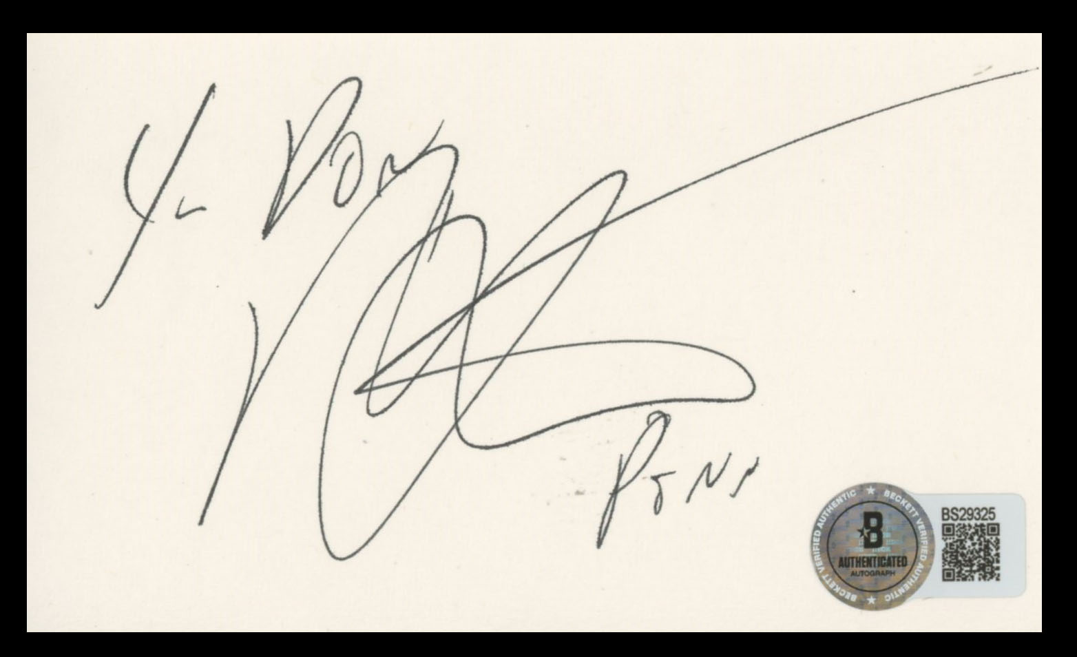 This Autographed 3x5 Index Card with the inscription of "4- Don" has been Personally Signed by Penn Jillette of Penn & Teller. This item is 100% Authentic to include a hologram by Beckett Authentication Services. This item will come with an affixed Beckett Authentication Services (BAS) authentication sticker, which includes a scannable QR code to verify authenticity. Please note that Beckett no longer provides serial-numbered COA cards, and the attached BAS sticker will serve as the complete authentication for this item. The authenticity can be verified on Beckett Authentication Services website.