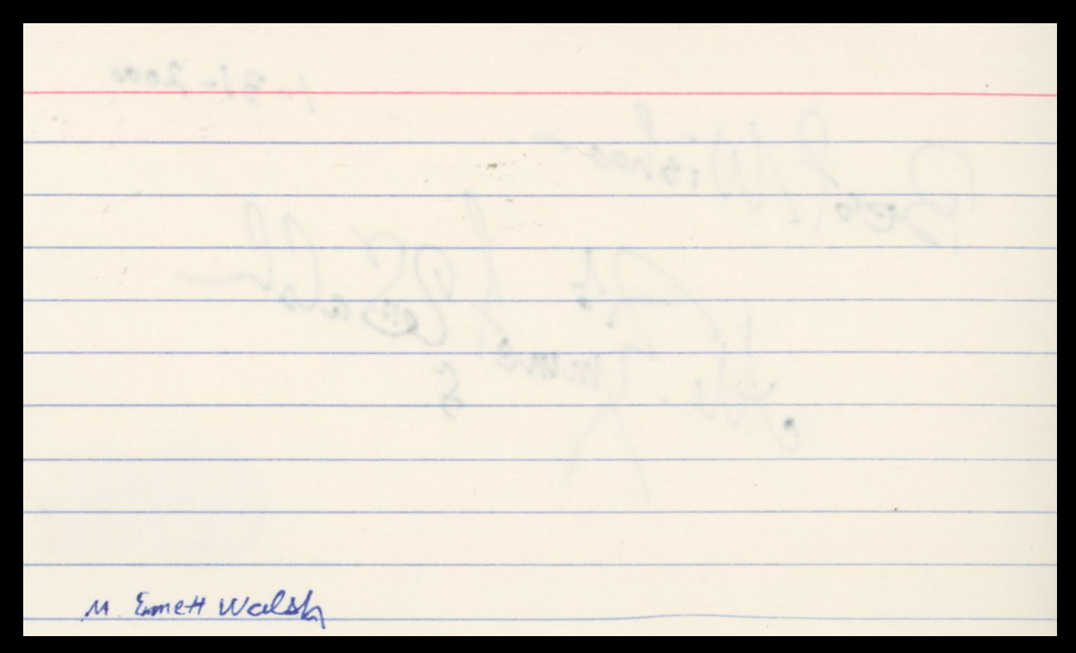 This Autographed 3x5 Index Card with the inscription of "Best Wishes 1-31-2000" has been Personally Signed by M. Emmet Walsh of Big Little Man. This item is 100% Authentic to include a hologram by Beckett Authentication Services. This item will come with an affixed Beckett Authentication Services (BAS) authentication sticker, which includes a scannable QR code to verify authenticity. Please note that Beckett no longer provides serial-numbered COA cards, and the attached BAS sticker will serve as the complete authentication for this item. The authenticity can be verified on Beckett Authentication Services website.