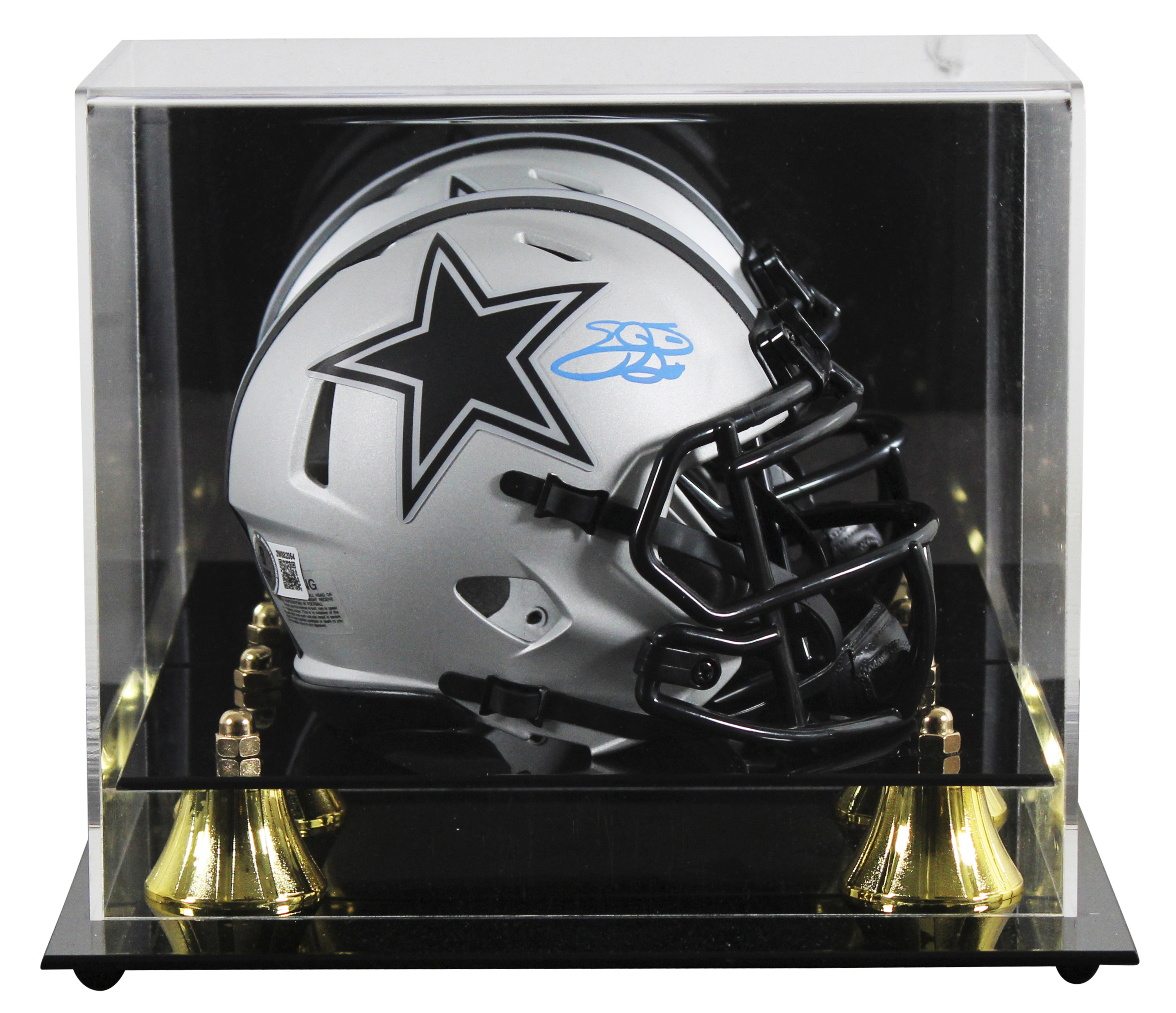 This Autographed Alternate Rave Speed Mini Helmet W/ Uv Mirrored Back Acrylic Display Case has been Personally Signed by Emmitt Smith of the Dallas Cowboys. This item is 100% Authentic to include a hologram by Beckett Authentication Services. This item will come with an affixed Beckett Authentication Services (BAS) authentication sticker, which includes a scannable QR code to verify authenticity. Please note that Beckett no longer provides serial-numbered COA cards, and the attached BAS sticker will serve as the complete authentication for this item. This is a BAS Witnessed Protection Program item which means a Beckett Authentication Service representative was present when this item was being signed. We conducted an autograph signing with Emmitt Smith where multiples of the same item were signed. While the photographs are representative of this item, the size, placement and strength of the signature may vary. Each item is hand signed, therefore, each autograph is unique. This item can be verified through BAS Witnessed.