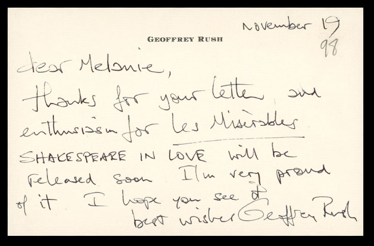Geoffrey Rush Pirates Of The Caribbean Authentic Signed 4.5x7 Note BAS #BS29394