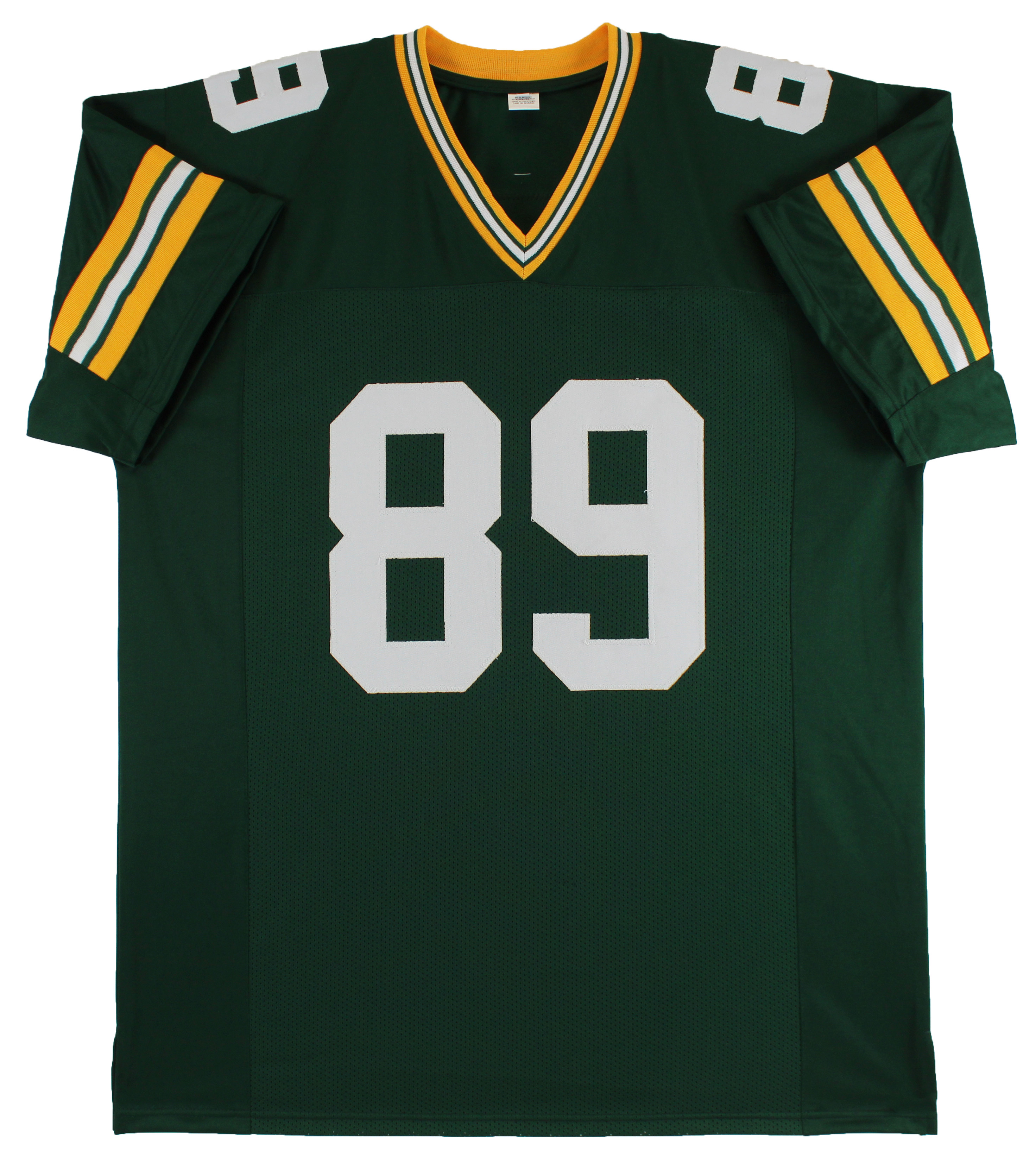This Autographed Green Pro Style Jersey with the inscription of "HOF 13" has been Personally Signed by Dave Robinson of the Green Bay Packers. This item is 100% Authentic to include a hologram by Beckett Authentication Services. This item will come with an affixed Beckett Authentication Services (BAS) authentication sticker, which includes a scannable QR code to verify authenticity. Please note that Beckett no longer provides serial-numbered COA cards, and the attached BAS sticker will serve as the complete authentication for this item. This is a BAS Witnessed Protection Program item which means a Beckett Authentication Service representative was present when this item was being signed. We conducted an autograph signing with Dave Robinson where multiples of the same item were signed. While the photographs are representative of this item, the size, placement and strength of the signature may vary. Each item is hand signed, therefore, each autograph is unique. This item can be verified through BAS Witnessed. This is a X-Large sized, non-branded, custom-stitched Jersey.