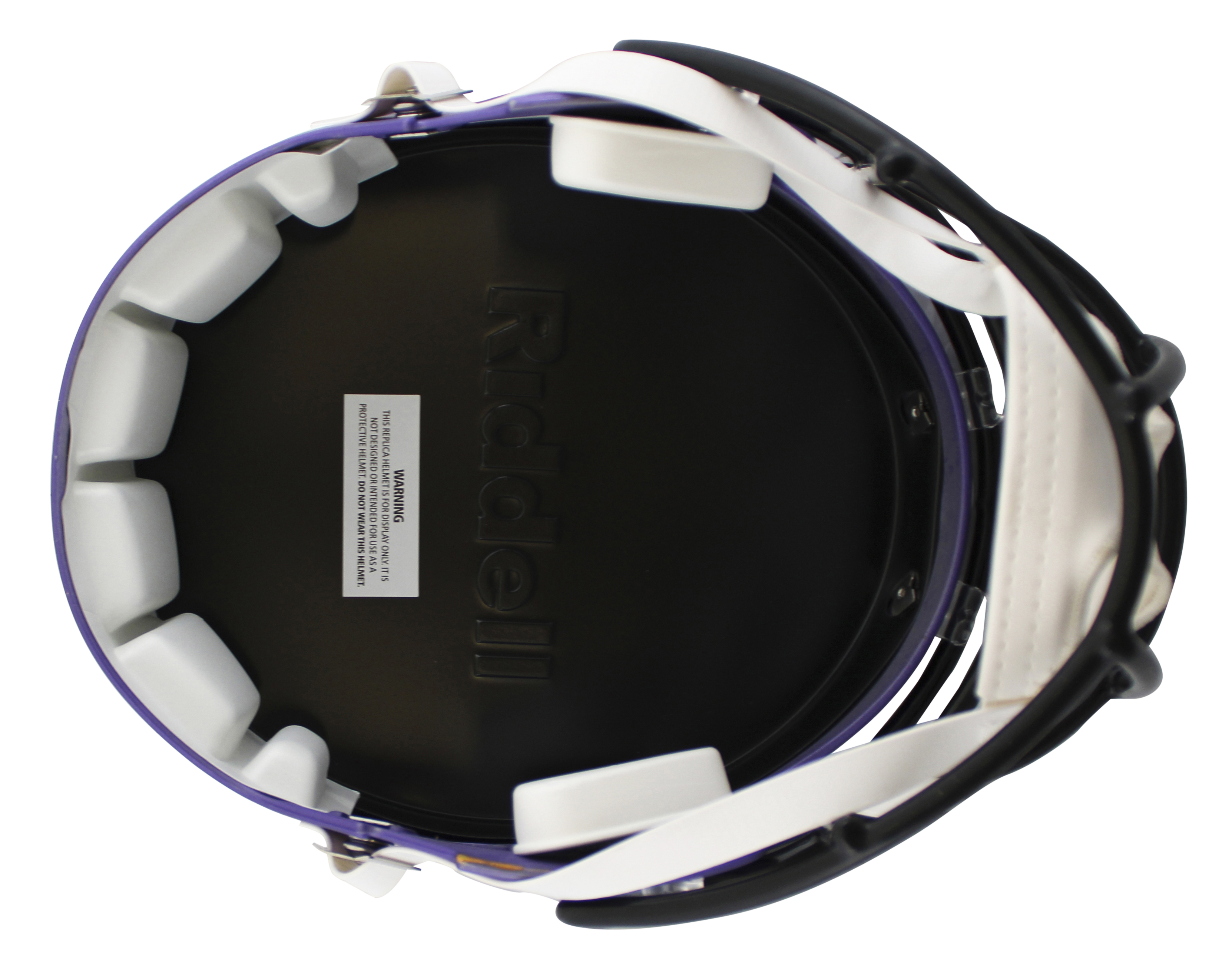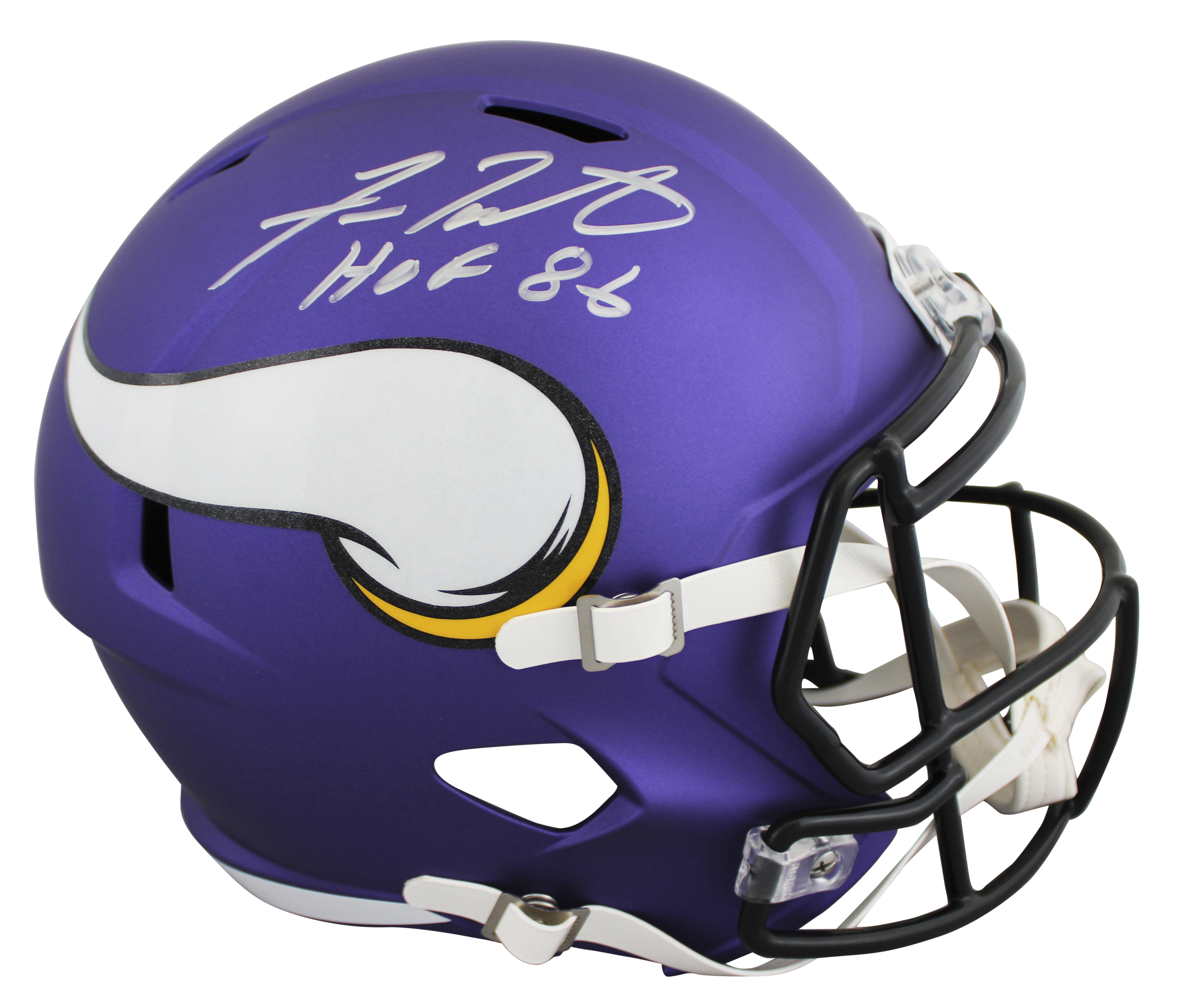 This Autographed w/ Silver Signature Riddell Full Size Speed Rep Helmet W/ Uv Mirrored Back Acrylic Display Case with the inscription of "HOF 86" has been Personally Signed by Fran Tarkenton of the Minnesota Vikings. This item is 100% Authentic to include a hologram by Beckett Authentication Services. This item will come with an affixed Beckett Authentication Services (BAS) authentication sticker, which includes a scannable QR code to verify authenticity. Please note that Beckett no longer provides serial-numbered COA cards, and the attached BAS sticker will serve as the complete authentication for this item. This is a BAS Witnessed Protection Program item which means a Beckett Authentication Service representative was present when this item was being signed. We conducted an autograph signing with Fran Tarkenton where multiples of the same item were signed. While the photographs are representative of this item, the size, placement and strength of the signature may vary. Each item is hand signed, therefore, each autograph is unique. This item can be verified through BAS Witnessed.