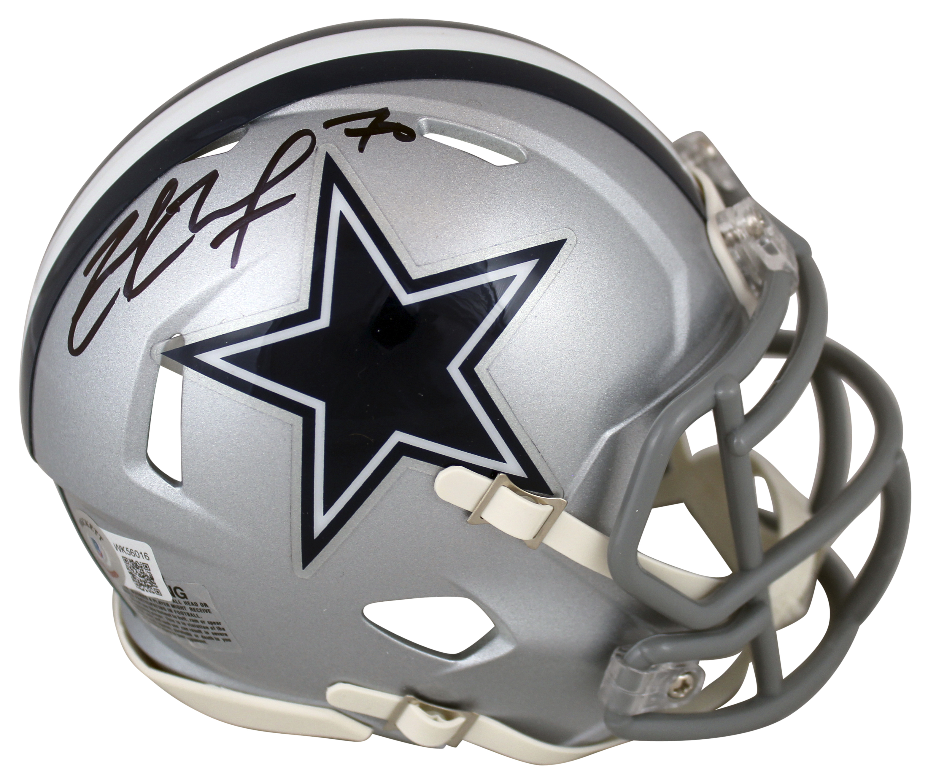This Autographed Silver Speed Mini Helmet W/ Uv Mirrored Back Acrylic Display Case has been Personally Signed by Zack Martin of the Dallas Cowboys. This item is 100% Authentic to include a hologram by Beckett Authentication Services. This item will come with an affixed Beckett Authentication Services (BAS) authentication sticker, which includes a scannable QR code to verify authenticity. Please note that Beckett no longer provides serial-numbered COA cards, and the attached BAS sticker will serve as the complete authentication for this item. This is a BAS Witnessed Protection Program item which means a Beckett Authentication Service representative was present when this item was being signed. We conducted an autograph signing with Zack Martin where multiples of the same item were signed. While the photographs are representative of this item, the size, placement and strength of the signature may vary. Each item is hand signed, therefore, each autograph is unique. This item can be verified through BAS Witnessed.