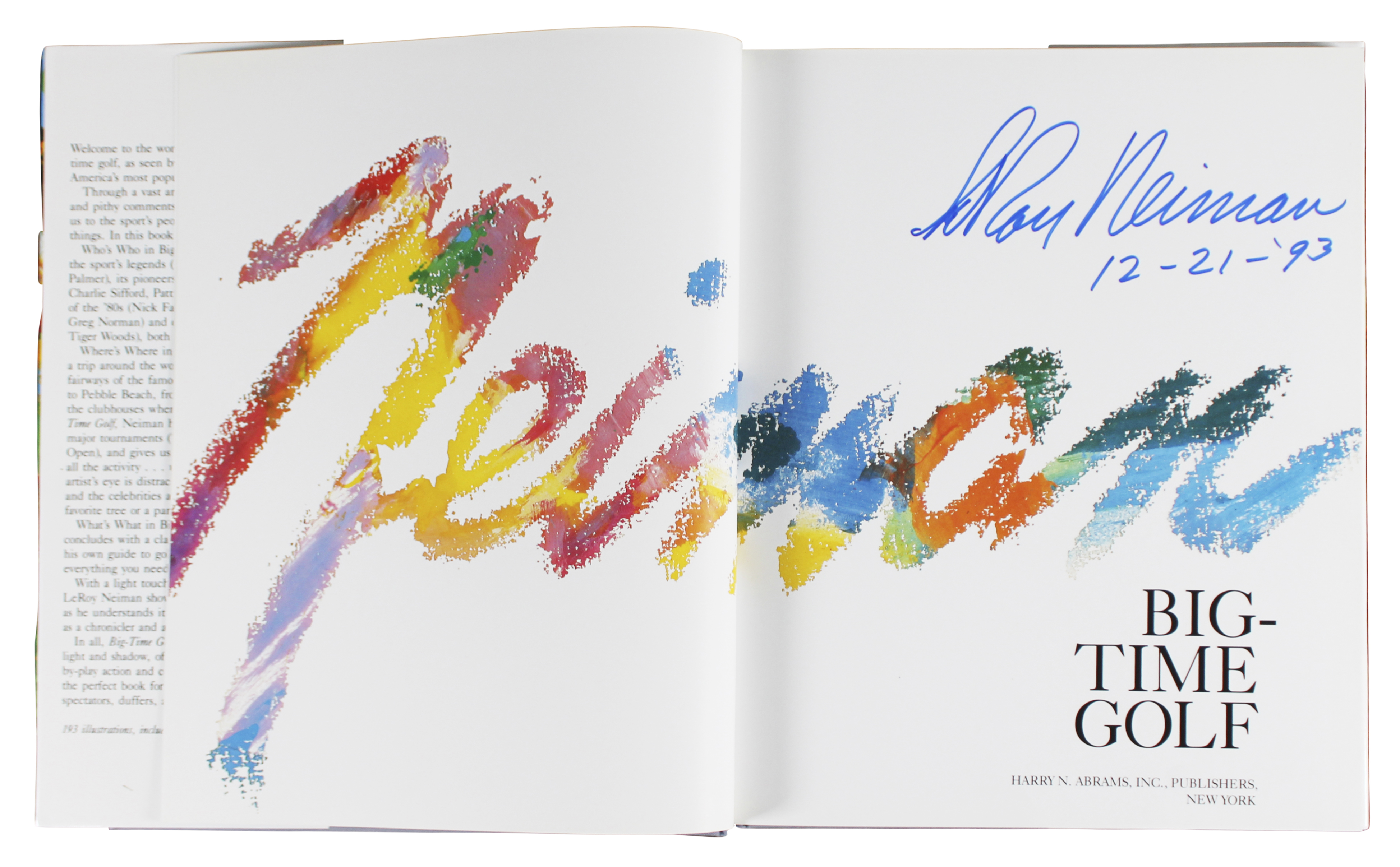 This Autographed Big-Time Golf Book with the inscription of "12-21-93" has been Personally Signed by LeRoy Neiman. This item is 100% Authentic to include a Certificate of Authenticity (COA) / hologram by JSA. The authenticity can be verified on JSA website.