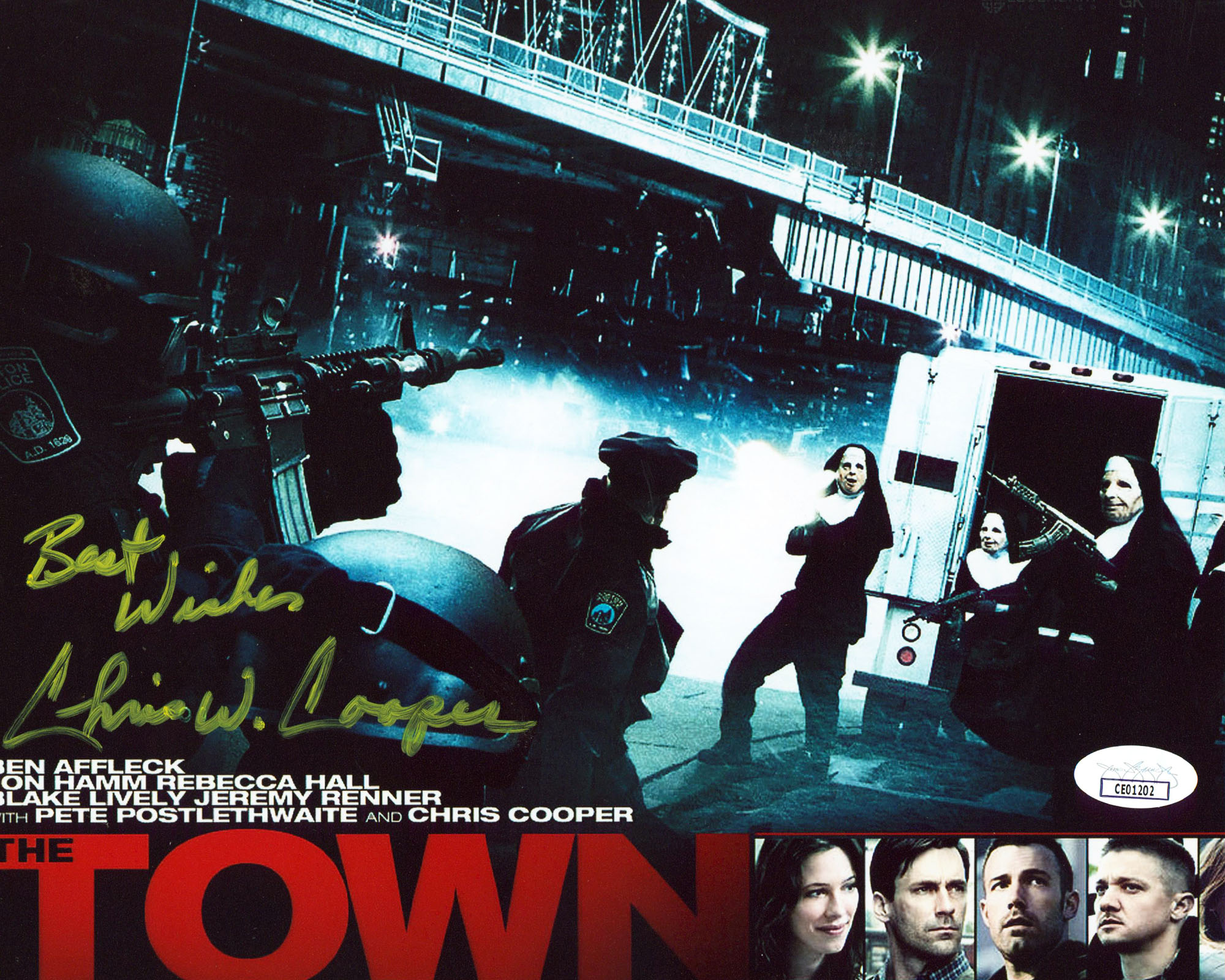 This Autographed Horizontal 8x10 Photo with the inscription of "Best Wishes" has been Personally Signed by Chris Cooper of The Town. This item is 100% Authentic to include a Certificate of Authenticity (COA) / hologram by JSA. The authenticity can be verified on JSA website.