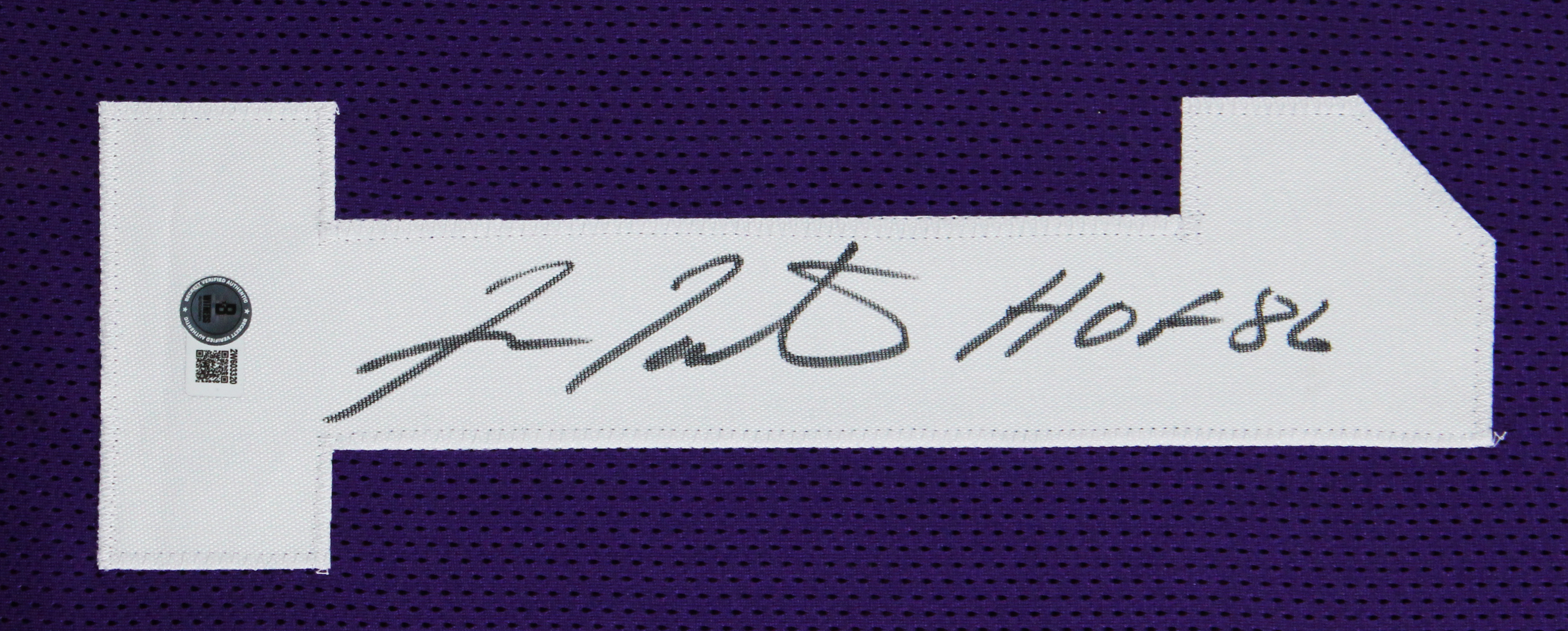 This Autographed Purple Pro Style Framed Jersey with the inscription of "HOF 86" has been Personally Signed by Fran Tarkenton of the Minnesota Vikings. This item is 100% Authentic to include a hologram by Beckett Authentication Services. This item will come with an affixed Beckett Authentication Services (BAS) authentication sticker, which includes a scannable QR code to verify authenticity. Please note that Beckett no longer provides serial-numbered COA cards, and the attached BAS sticker will serve as the complete authentication for this item. This is a BAS Witnessed Protection Program item which means a Beckett Authentication Service representative was present when this item was being signed. We have multiples of this same item. While the photographs are representative of this item, the size, placement and strength of the signature may vary. Each item is hand signed, therefore, each autograph is unique. This item has been professionally framed to overall dimensions of approximately 32 x 37 inches. This is a X-Large sized, non-branded, custom-stitched Framed Jersey. This jersey will be framed to order, it will take approximately 3-4 business days from purchase date for it to ship.