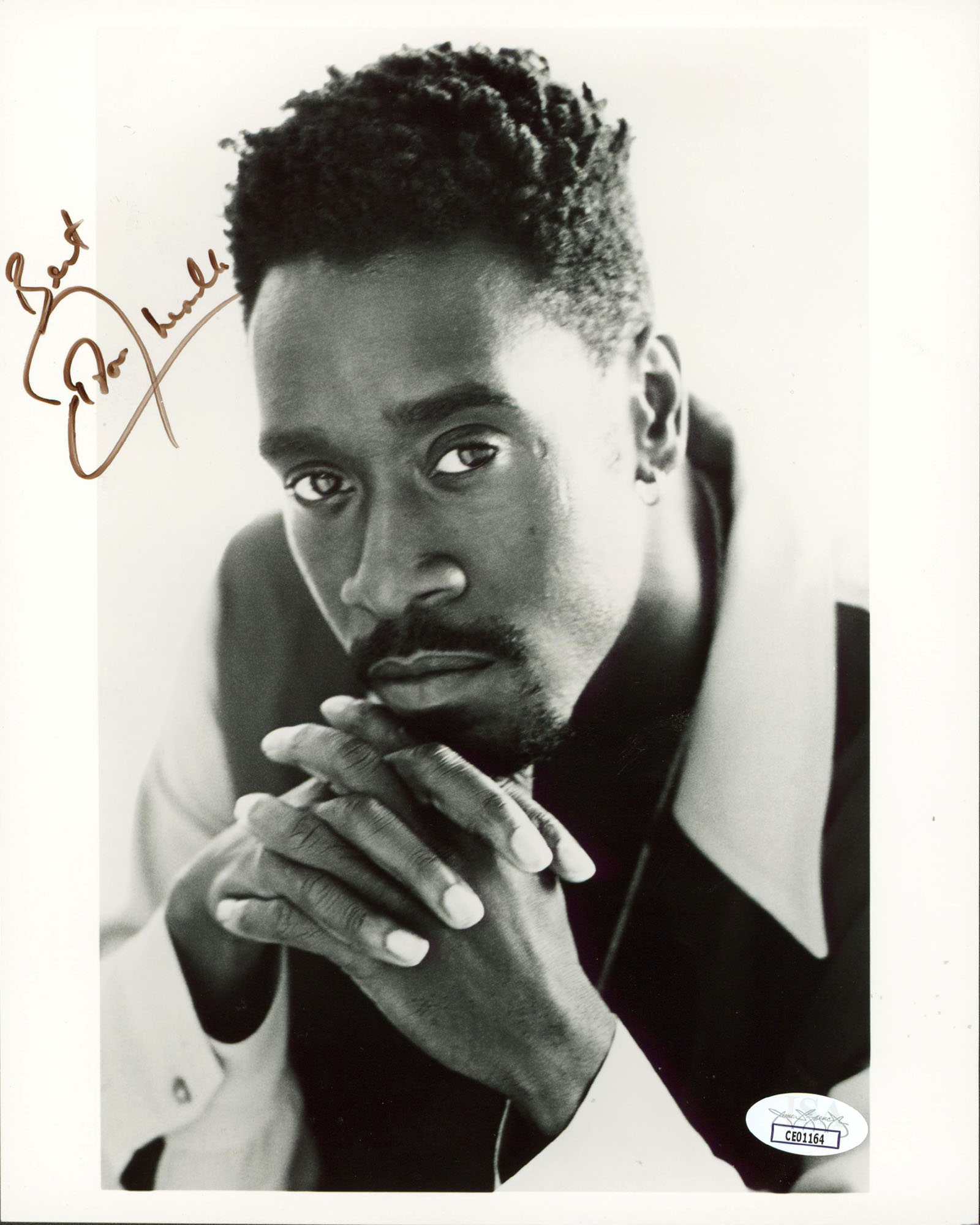 This Autographed Vertical 8x10 Photo with the inscription of "Best" has been Personally Signed by Don Cheadle of Miles Ahead. This item is 100% Authentic to include a Certificate of Authenticity (COA) / hologram by JSA. The authenticity can be verified on JSA website. This photo has normal handling wear.