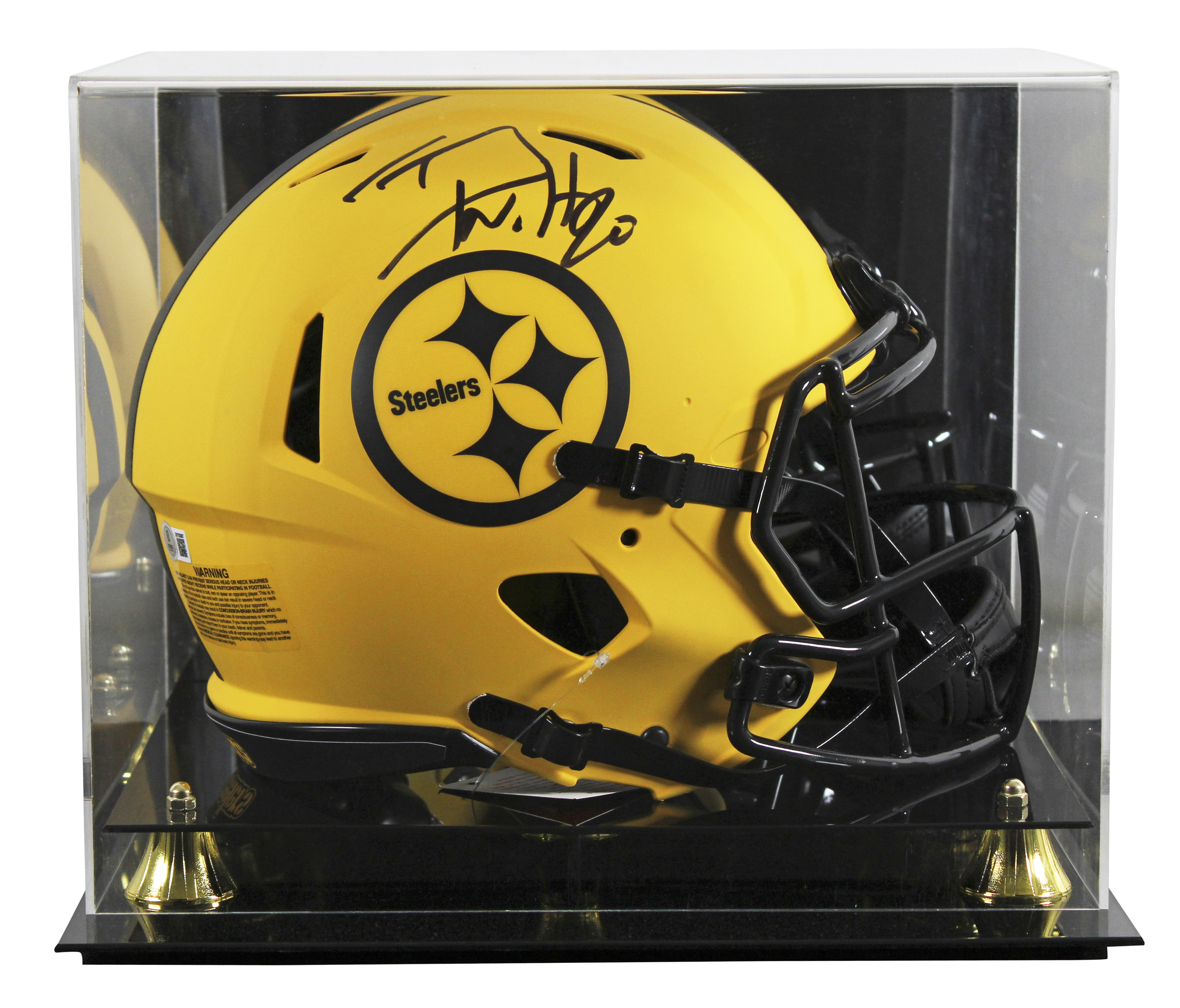 This Autographed Alternate Rave Riddell Full Size Speed Proline Helmet W/ Uv Mirrored Back Acrylic Display Case has been Personally Signed by T.J. Watt of the Pittsburgh Steelers. This item is 100% Authentic to include a hologram by Beckett Authentication Services. This item will come with an affixed Beckett Authentication Services (BAS) authentication sticker, which includes a scannable QR code to verify authenticity. Please note that Beckett no longer provides serial-numbered COA cards, and the attached BAS sticker will serve as the complete authentication for this item. This is a BAS Witnessed Protection Program item which means a Beckett Authentication Service representative was present when this item was being signed. We conducted an autograph signing with T.J. Watt where multiples of the same item were signed. While the photographs are representative of this item, the size, placement and strength of the signature may vary. Each item is hand signed, therefore, each autograph is unique. This item can be verified through BAS Witnessed.