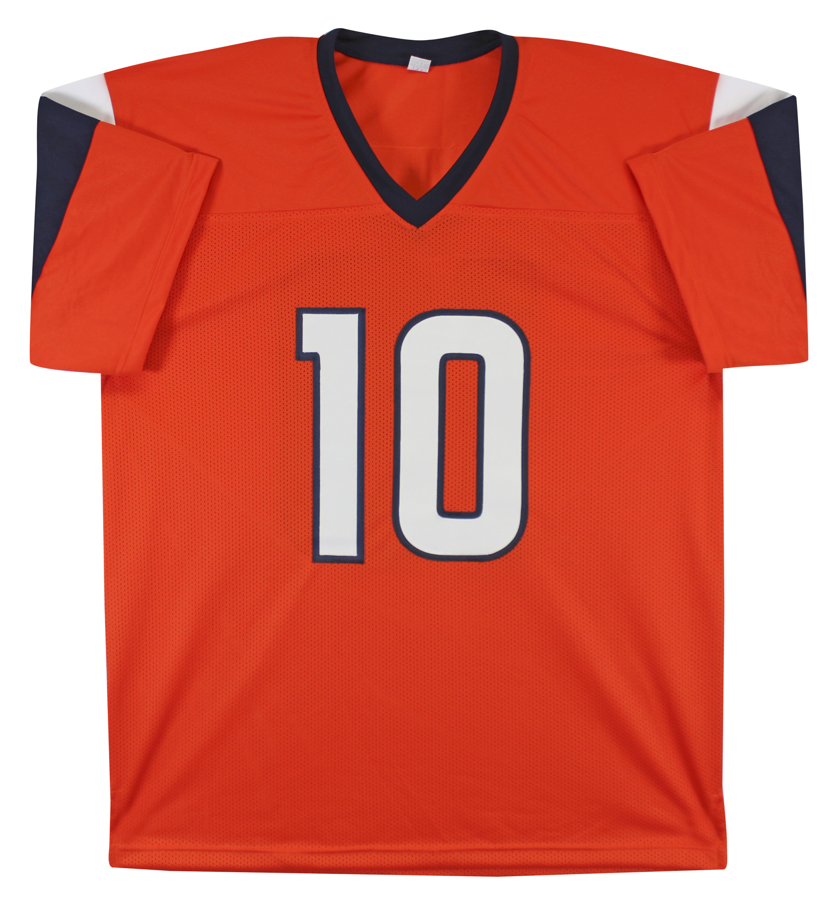 This Autographed Orange Pro Style Jersey has been Personally Signed by Bo Nix of the Denver Broncos. This item is 100% Authentic to include a hologram by Beckett Authentication Services. This item will come with an affixed Beckett Authentication Services (BAS) authentication sticker, which includes a scannable QR code to verify authenticity. Please note that Beckett no longer provides serial-numbered COA cards, and the attached BAS sticker will serve as the complete authentication for this item. This is a BAS Witnessed Protection Program item which means a Beckett Authentication Service representative was present when this item was being signed. We conducted an autograph signing with Bo Nix where multiples of the same item were signed. While the photographs are representative of this item, the size, placement and strength of the signature may vary. Each item is hand signed, therefore, each autograph is unique. This item can be verified through BAS Witnessed. This is a X-Large sized, non-branded, custom-stitched Jersey.