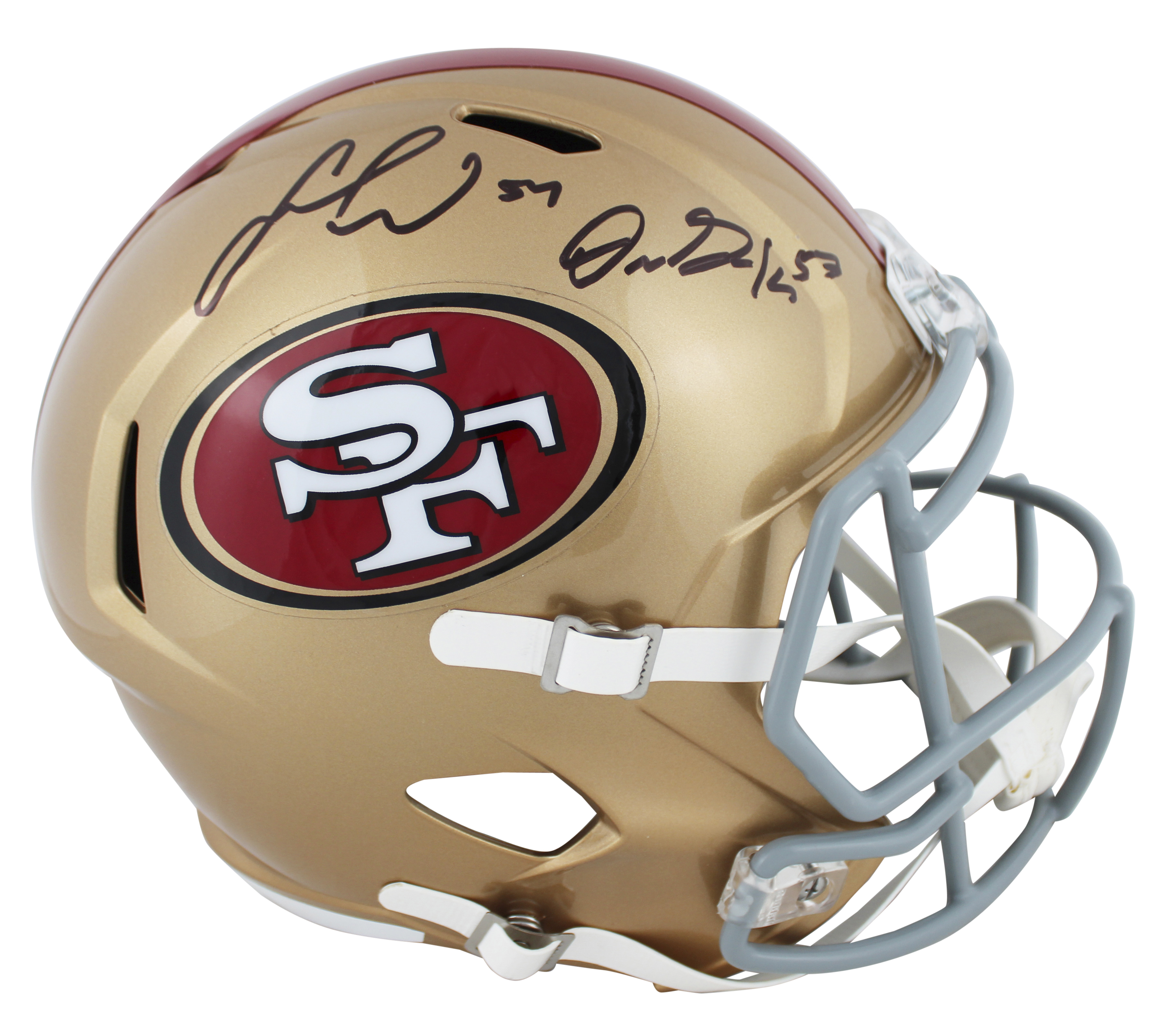 49ers Fred Warner & Dre Greenlaw Signed Full Size Speed Rep Helmet BAS