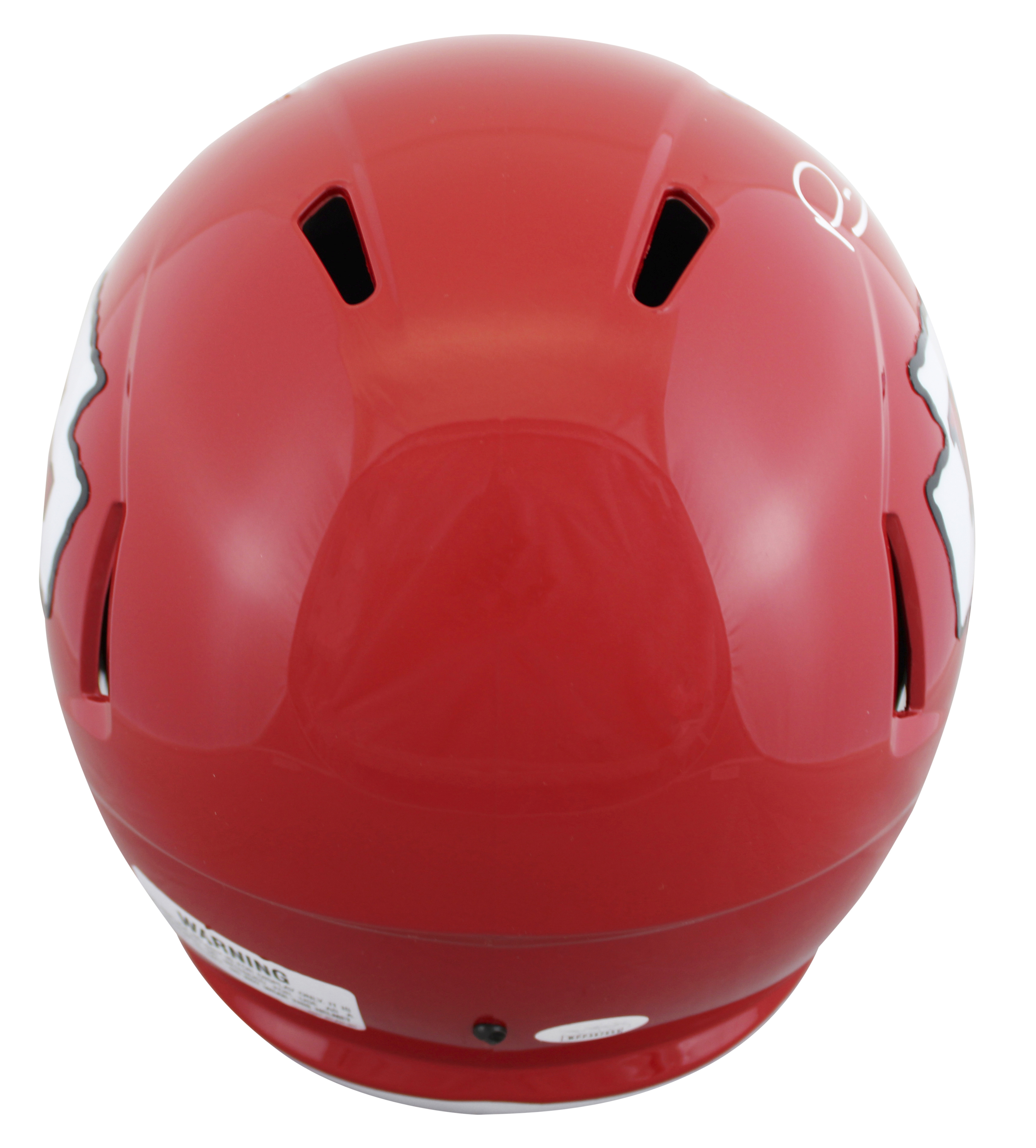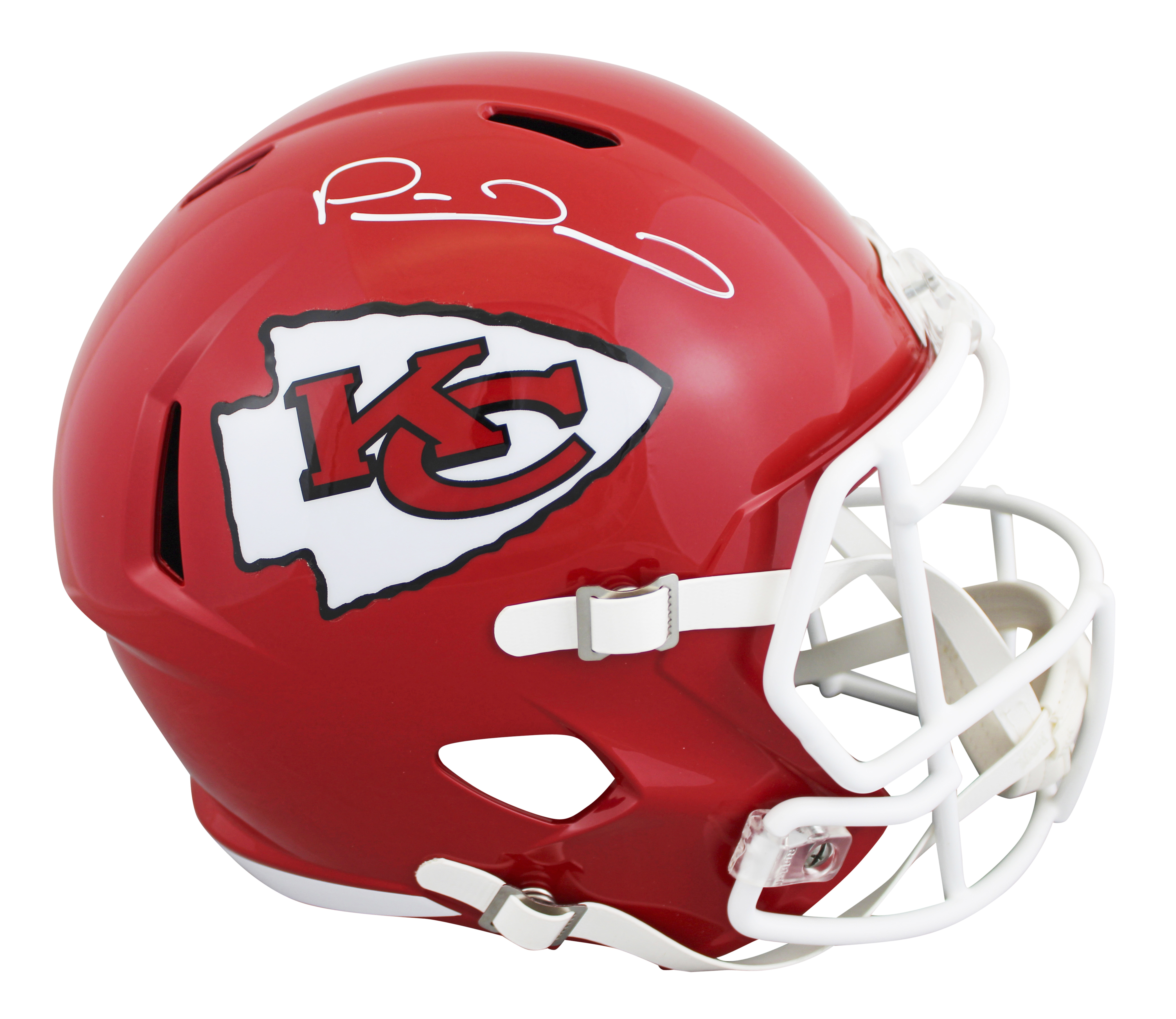 This Autographed Riddell Full Size Speed Rep Helmet has been Personally Signed by Patrick Mahomes of the Kansas City Chiefs. This item is 100% Authentic to include a Certificate of Authenticity (COA) / hologram by JSA Witness. This is a JSA Witnessed Protection Program item which means a JSA representative was present when this item was being signed. We conducted an autograph signing with Patrick Mahomes where multiples of the same item were signed. While the photographs are representative of this item, the size, placement and strength of the signature may vary. Each item is hand signed, therefore, each autograph is unique. This item can be verified through JSA Witness.