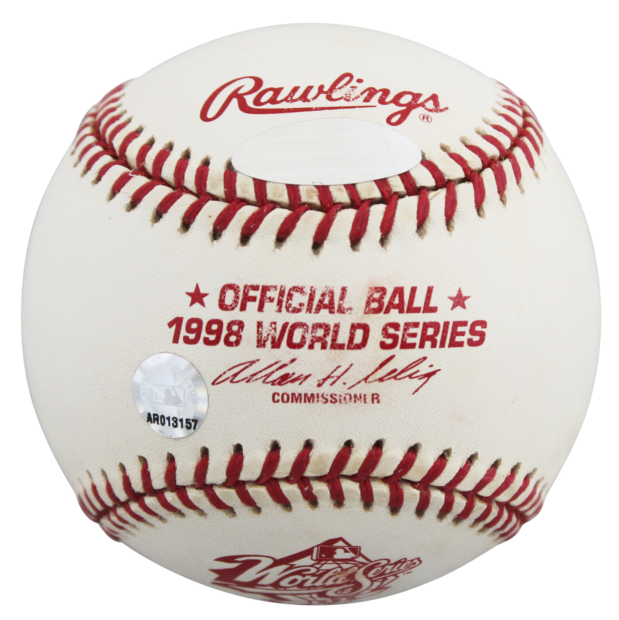 This Autographed 1998 World Series Selig Oml Baseball has been Personally Signed by Derek Jeter of the New York Yankees. This item is 100% Authentic to include a numbered hologram from MLB. The authenticity can be verified on MLB website.