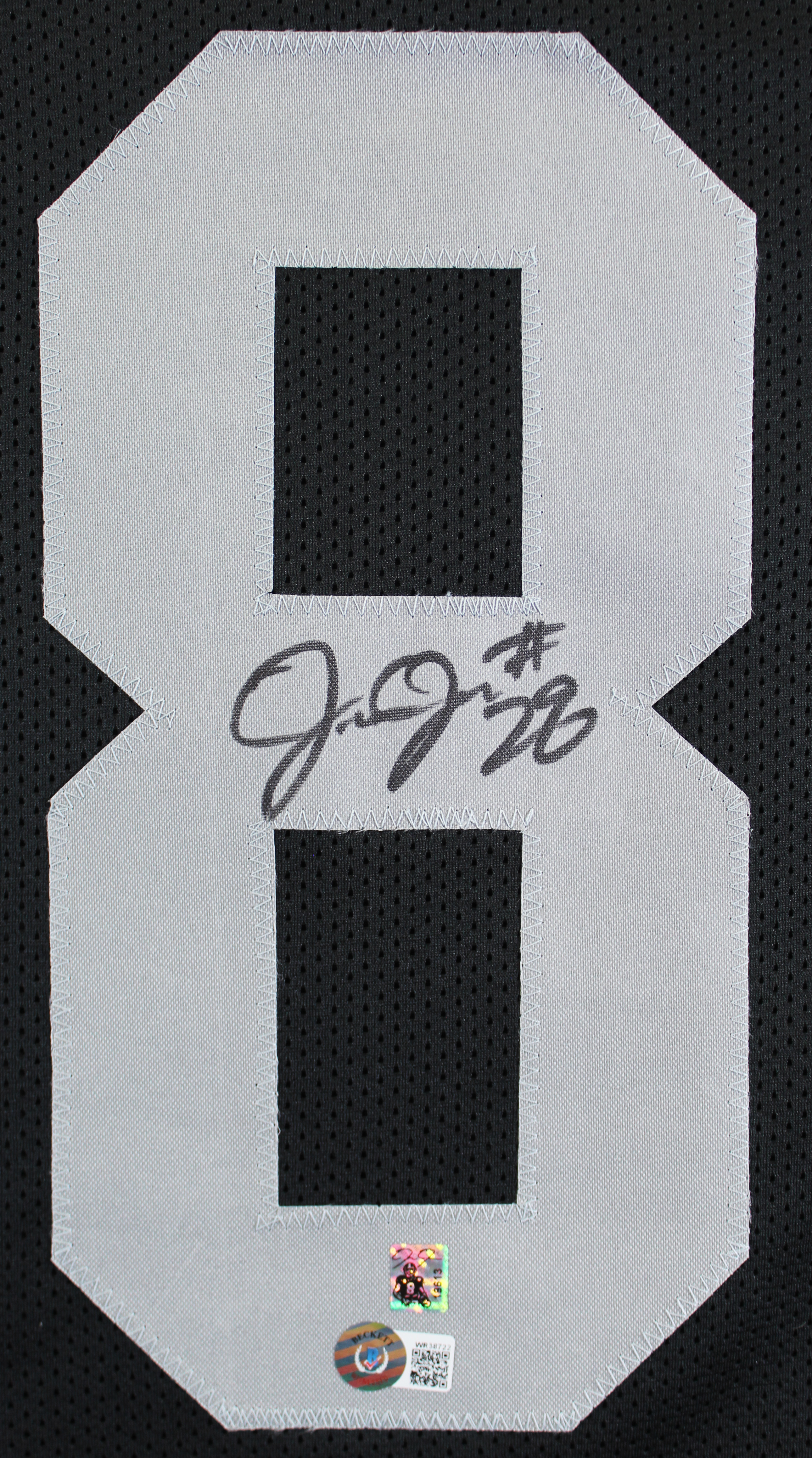 This Autographed Black Pro Style Jersey has been Personally Signed by Josh Jacobs of the Las Vegas Raiders. This item is 100% Authentic to include a hologram by Beckett Authentication Services. This item will come with the new Beckett Authentication hologram that has a scannable QR code rather than the traditional COA. If you would like to have a COA, you are welcome to reach out to Beckett for a printed certification once you receive your item. This is a BAS Witnessed Protection Program item which means a Beckett Authentication Service representative was present when this item was being signed. We conducted an autograph signing with Josh Jacobs where multiples of the same item were signed. While the photographs are representative of this item, the size, placement and strength of the signature may vary. Each item is hand signed, therefore, each autograph is unique. This item can be verified through BAS Witnessed.