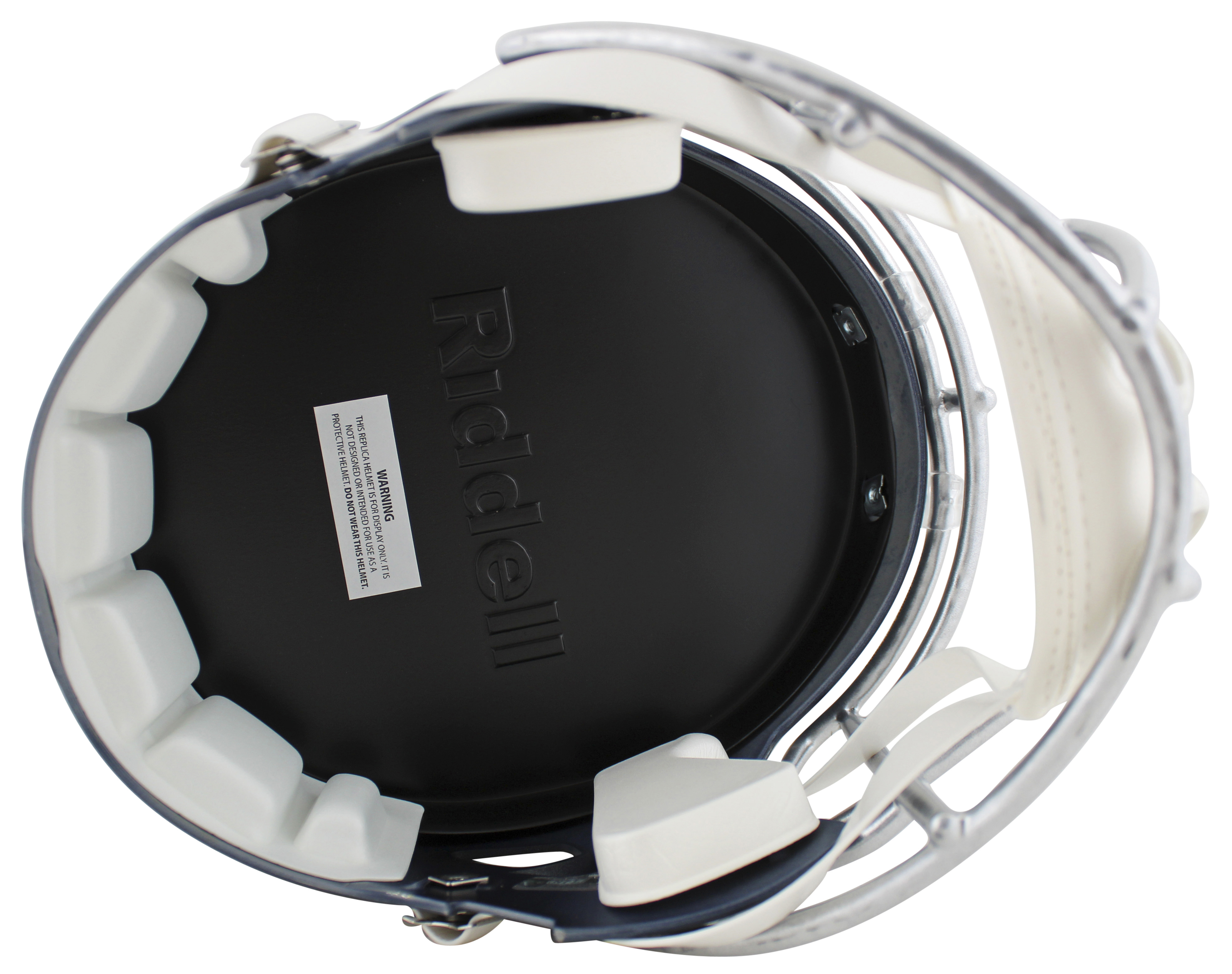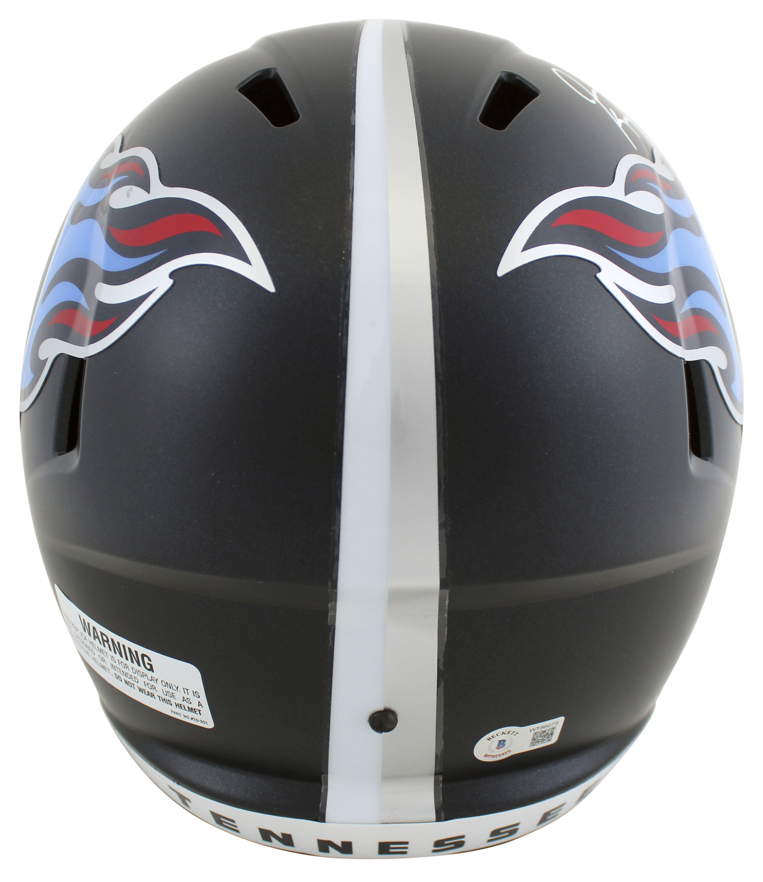 This Autographed w/ White SIgnature Navy Full Size Speed Rep Helmet with the inscription of "The Freak" has been Personally Signed by Jevon Kearse of the Tennessee Titans. This item is 100% Authentic to include a hologram by Beckett Authentication Services. This item will come with the new Beckett Authentication hologram that has a scannable QR code rather than the traditional COA. If you would like to have a COA, you are welcome to reach out to Beckett for a printed certification once you receive your item. This is a BAS Witnessed Protection Program item which means a Beckett Authentication Service representative was present when this item was being signed. We conducted an autograph signing with Jevon Kearse where multiples of the same item were signed. While the photographs are representative of this item, the size, placement and strength of the signature may vary. Each item is hand signed, therefore, each autograph is unique. This item can be verified through BAS Witnessed.