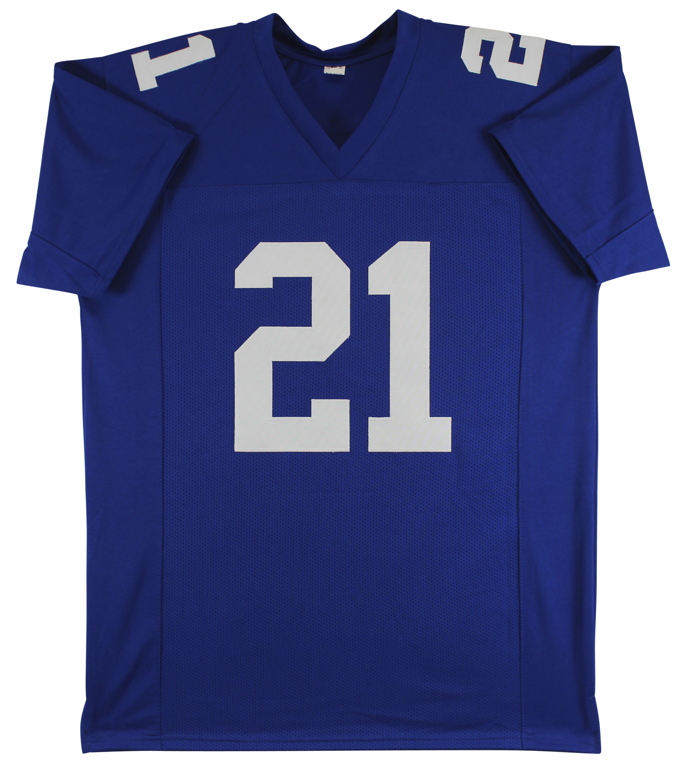 This Autographed Blue Pro Style Jersey has been Personally Signed by Tiki Barber of the New York Giants. This item is 100% Authentic to include a hologram by Beckett Authentication Services. This item may come with the new Beckett Authentication hologram that has a scannable QR code rather than the traditional COA. If you would like to have a COA, you are welcome to reach out to Beckett for a printed certification once you receive your item. This is a BAS Witnessed Protection Program item which means a Beckett Authentication Service representative was present when this item was being signed. We conducted an autograph signing with Tiki Barber where multiples of the same item were signed. While the photographs are representative of this item, the size, placement and strength of the signature may vary. Each item is hand signed, therefore, each autograph is unique. This item can be verified through BAS Witnessed. This is a X-Large sized, non-branded, custom-stitched Jersey.