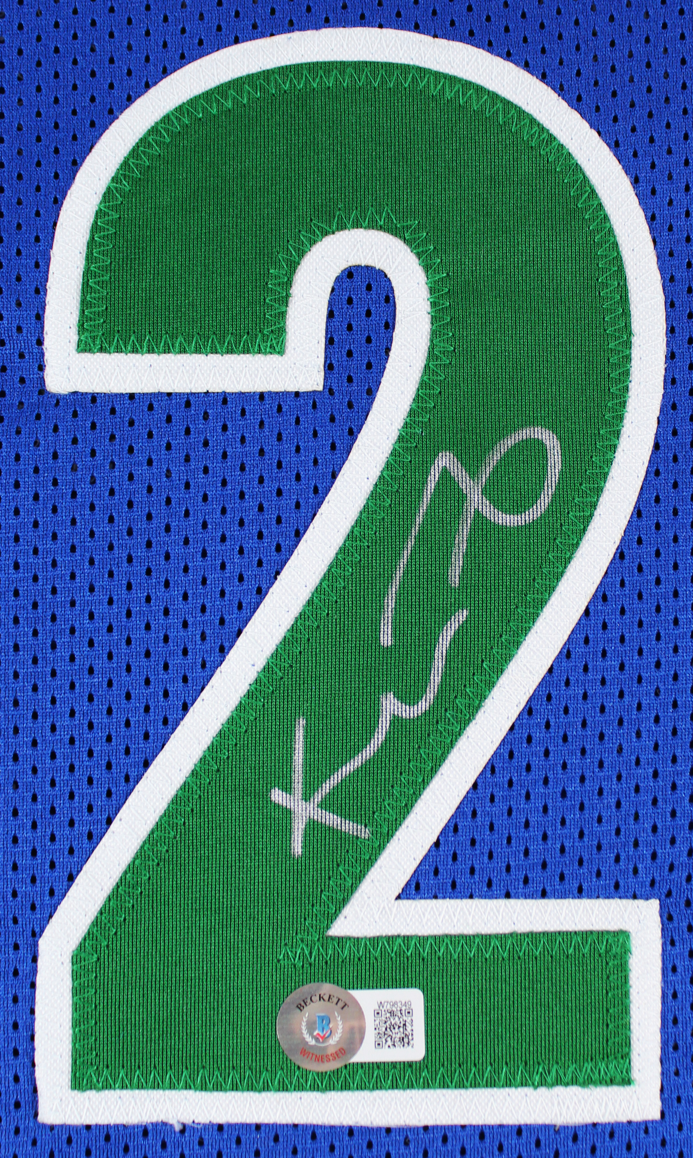 This Autographed Blue Throwback Pro Style Jersey has been Personally Signed by Kevin Garnett of the Minnesota Timberwolves. This item is 100% Authentic to include a hologram by Beckett Authentication Services. This item will come with an affixed Beckett Authentication Services (BAS) authentication sticker, which includes a scannable QR code to verify authenticity. Please note that Beckett no longer provides serial-numbered COA cards, and the attached BAS sticker will serve as the complete authentication for this item. This is a BAS Witnessed Protection Program item which means a Beckett Authentication Service representative was present when this item was being signed. We conducted an autograph signing with Kevin Garnett where multiples of the same item were signed. While the photographs are representative of this item, the size, placement and strength of the signature may vary. Each item is hand signed, therefore, each autograph is unique. This item can be verified through BAS Witnessed. This is a X-Large sized, non-branded, custom-stitched Jersey.