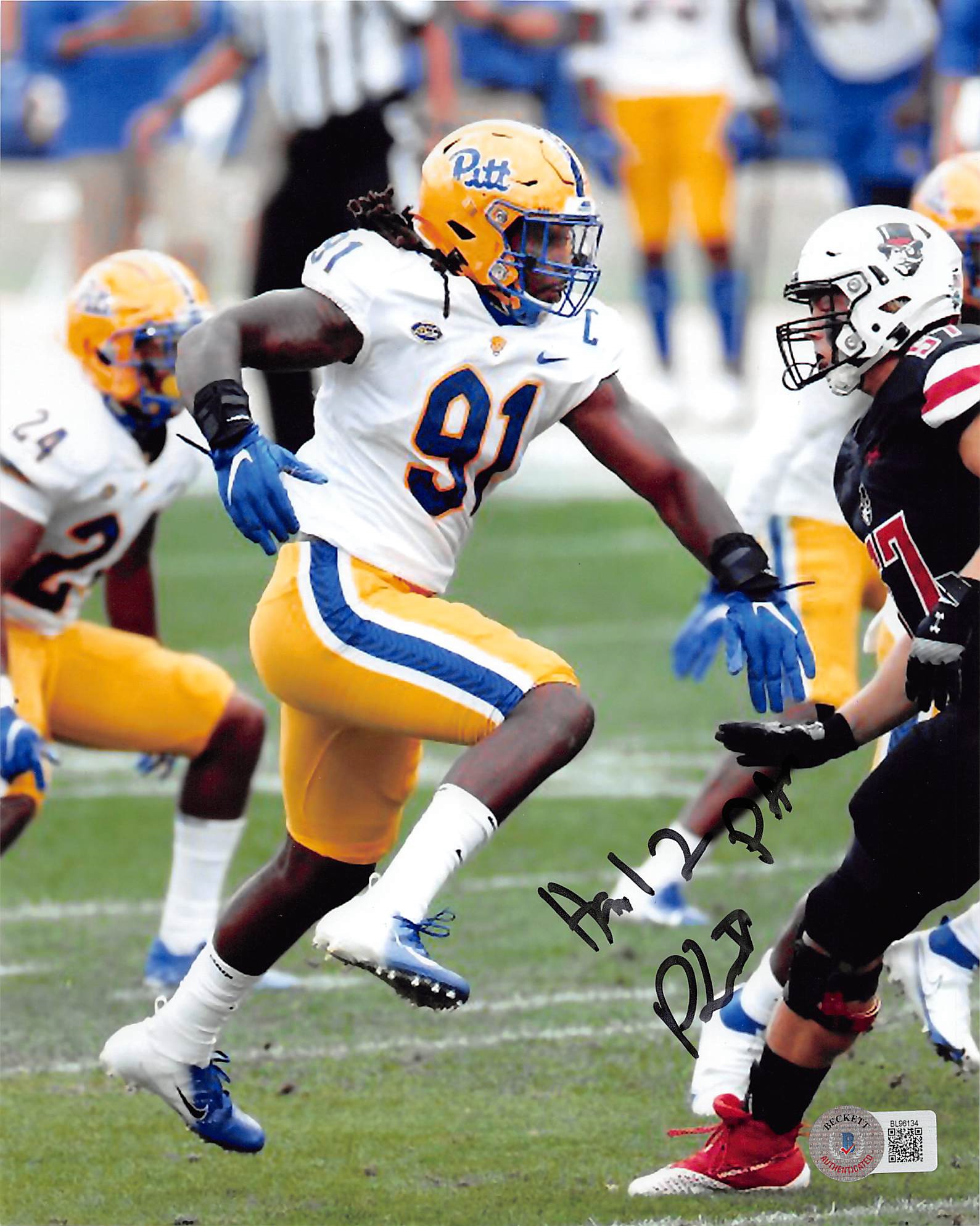 This Autographed Vertical 8x10 Photo with the inscription of "Hail To Pitt" has been Personally Signed by Patrick Jones of the Pittsburgh Panthers. This item is 100% Authentic to include a hologram by Beckett Authentication Services. This item will come with an affixed Beckett Authentication Services (BAS) authentication sticker, which includes a scannable QR code to verify authenticity. Please note that Beckett no longer provides serial-numbered COA cards, and the attached BAS sticker will serve as the complete authentication for this item. We conducted an autograph signing with Patrick Jones where multiples of the same item were signed. While the photographs are representative of this item, the size, placement and strength of the signature may vary. Each item is hand signed, therefore, each autograph is unique. This item can be verified through BAS.