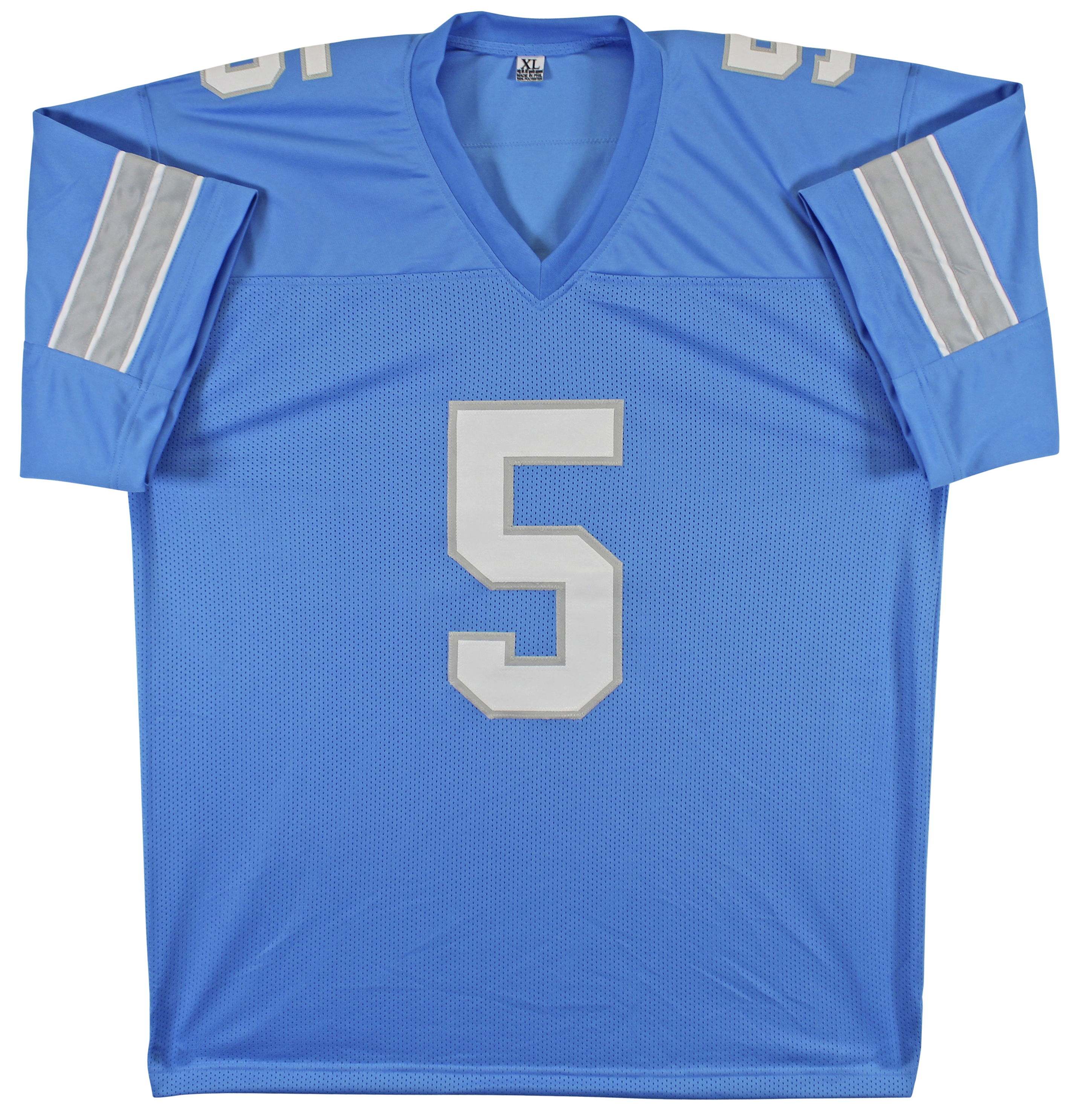 This Autographed w/ White Numbers Blue Pro Style Jersey has been Personally Signed by David Montgomery of the Detroit Lions. This item is 100% Authentic to include a hologram by Beckett Authentication Services. This item will come with an affixed Beckett Authentication Services (BAS) authentication sticker, which includes a scannable QR code to verify authenticity. Please note that Beckett no longer provides serial-numbered COA cards, and the attached BAS sticker will serve as the complete authentication for this item. This is a BAS Witnessed Protection Program item which means a Beckett Authentication Service representative was present when this item was being signed. We conducted an autograph signing with David Montgomery where multiples of the same item were signed. While the photographs are representative of this item, the size, placement and strength of the signature may vary. Each item is hand signed, therefore, each autograph is unique. This item can be verified through BAS Witnessed. This is a X-Large sized, non-branded, custom-stitched Jersey.