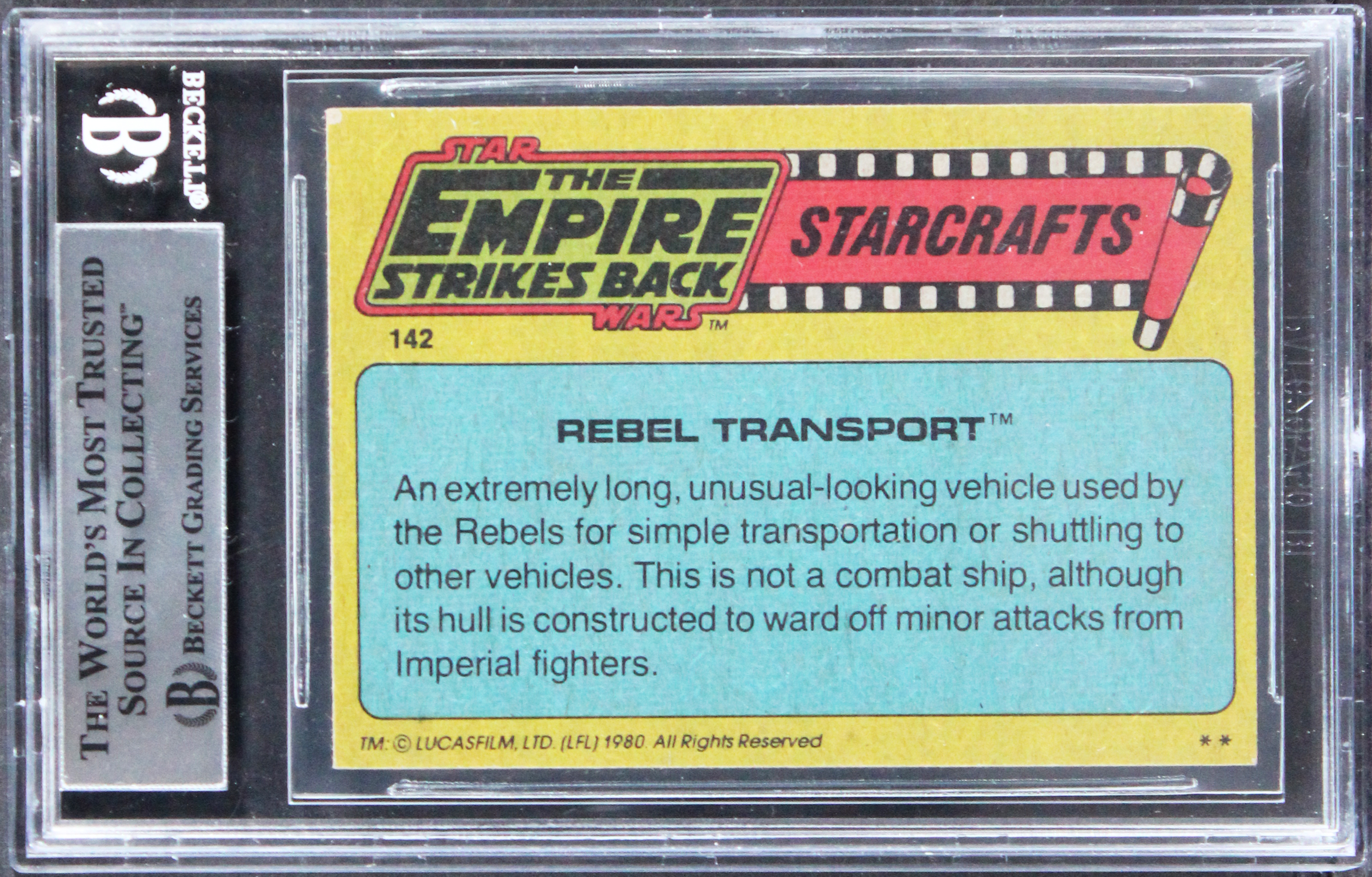 This Autographed 1980 SW Empire Strikes Back #142 Card has been Personally Signed by Ease Owyeung, Marty Brenneis, Nilo Rodis-Jamero & Michael Fulmer of Star Wars. This item is 100% Authentic, it comes slabbed and authenticated by Beckett Authentication Services. The authenticity can be verified on Beckett Authentication Services website.