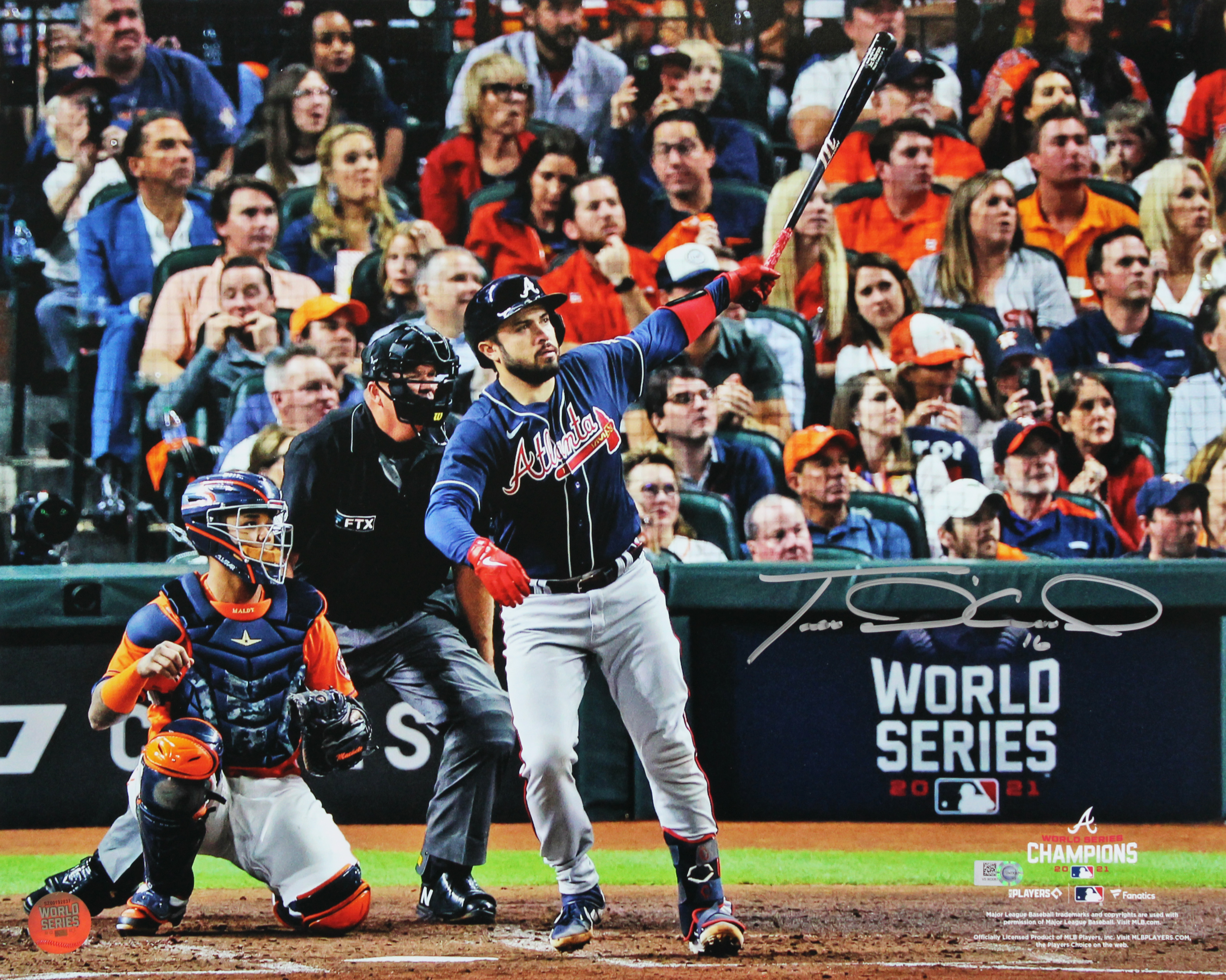 This Autographed Horizontal 16x20 Photo has been Personally Signed by Travis D'Arnaud of the Atlanta Braves. This item is 100% Authentic to include a numbered hologram from MLB. We have multiples of this same item. While the photographs are representative of this item, the size, placement and strength of the signature may vary. Each item is hand signed, therefore, each autograph is unique.