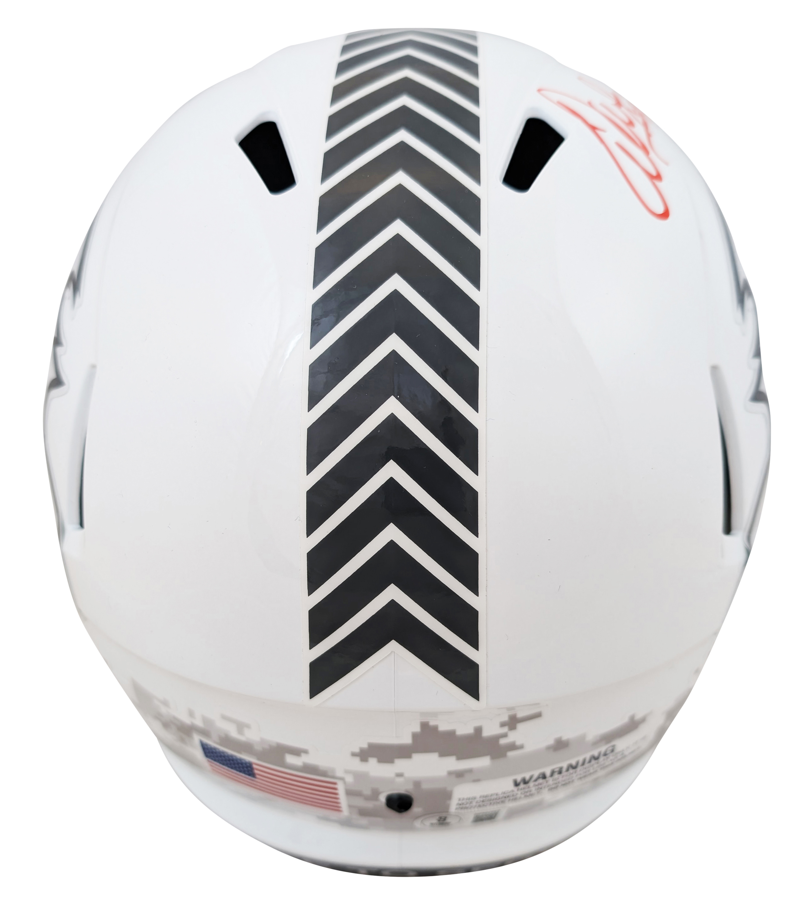This Autographed Alternate Salute To Service III Riddell Full Size Speed Rep Helmet with the inscription of "HOF 13" has been Personally Signed by Warren Sapp of the Tampa Bay Buccaneers. This item is 100% Authentic to include a hologram by Beckett Authentication Services. This item will come with an affixed Beckett Authentication Services (BAS) authentication sticker, which includes a scannable QR code to verify authenticity. Please note that Beckett no longer provides serial-numbered COA cards, and the attached BAS sticker will serve as the complete authentication for this item. This is a BAS Witnessed Protection Program item which means a Beckett Authentication Service representative was present when this item was being signed. We conducted an autograph signing with Warren Sapp where multiples of the same item were signed. While the photographs are representative of this item, the size, placement and strength of the signature may vary. Each item is hand signed, therefore, each autograph is unique. This item can be verified through BAS Witnessed.