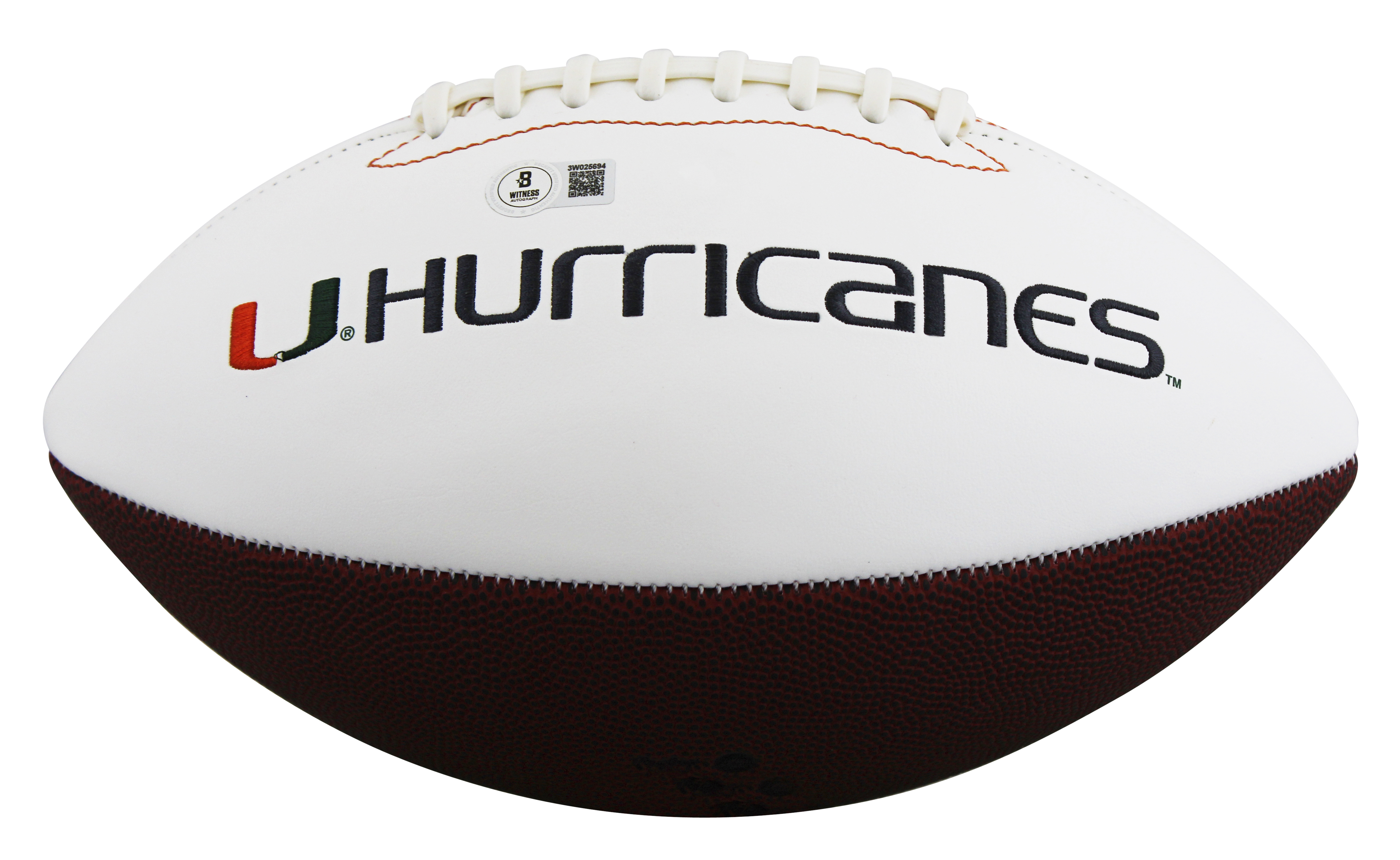 This Autographed Rawlings White Panel Logo Football W/ Uv Mirrored Back Acrylic Display Case has been Personally Signed by Ray Lewis of the Miami Hurricanes. This item is 100% Authentic to include a hologram by Beckett Authentication Services. This item will come with an affixed Beckett Authentication Services (BAS) authentication sticker, which includes a scannable QR code to verify authenticity. Please note that Beckett no longer provides serial-numbered COA cards, and the attached BAS sticker will serve as the complete authentication for this item. This is a BAS Witnessed Protection Program item which means a Beckett Authentication Service representative was present when this item was being signed. We conducted an autograph signing with Ray Lewis where multiples of the same item were signed. While the photographs are representative of this item, the size, placement and strength of the signature may vary. Each item is hand signed, therefore, each autograph is unique. This item can be verified through BAS Witnessed.