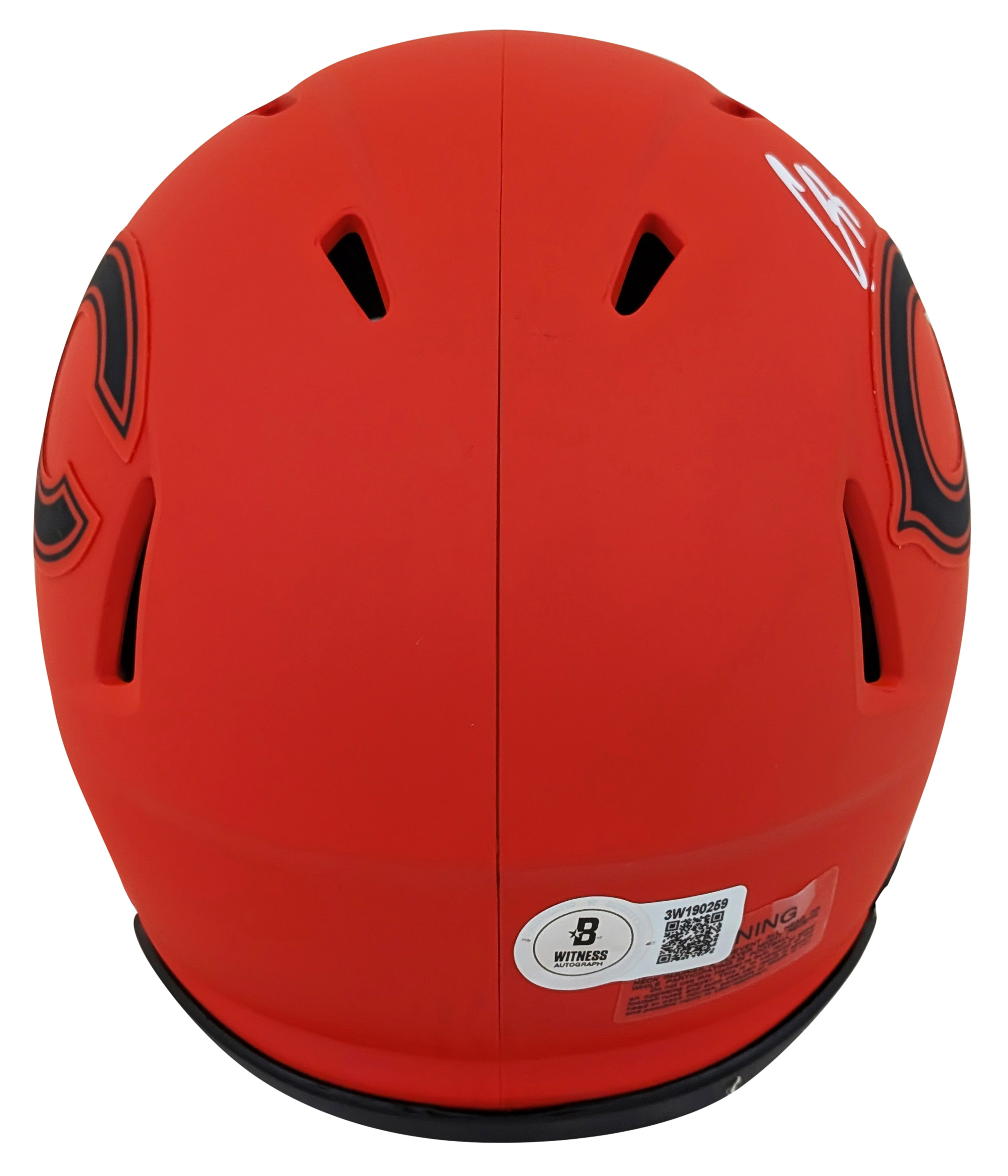 This Autographed Alternate Rave Speed Mini Helmet has been Personally Signed by Luther Burden III of the Chicago Bears. This item is 100% Authentic to include a hologram by Beckett Authentication Services. This item will come with an affixed Beckett Authentication Services (BAS) authentication sticker, which includes a scannable QR code to verify authenticity. Please note that Beckett no longer provides serial-numbered COA cards, and the attached BAS sticker will serve as the complete authentication for this item. This is a BAS Witnessed Protection Program item which means a Beckett Authentication Service representative was present when this item was being signed. We conducted an autograph signing with Luther Burden III where multiples of the same item were signed. While the photographs are representative of this item, the size, placement and strength of the signature may vary. Each item is hand signed, therefore, each autograph is unique. This item can be verified through BAS Witnessed.