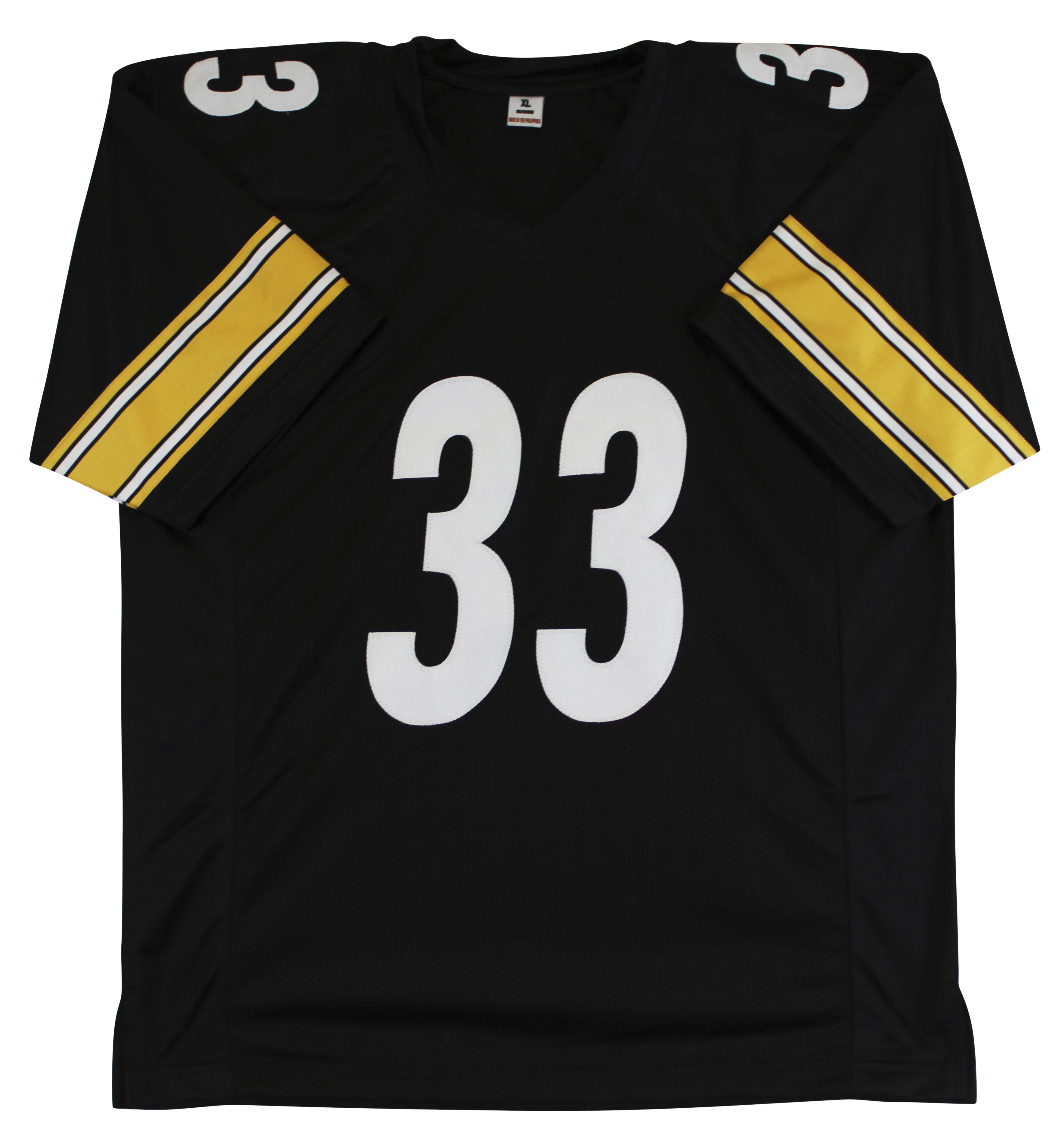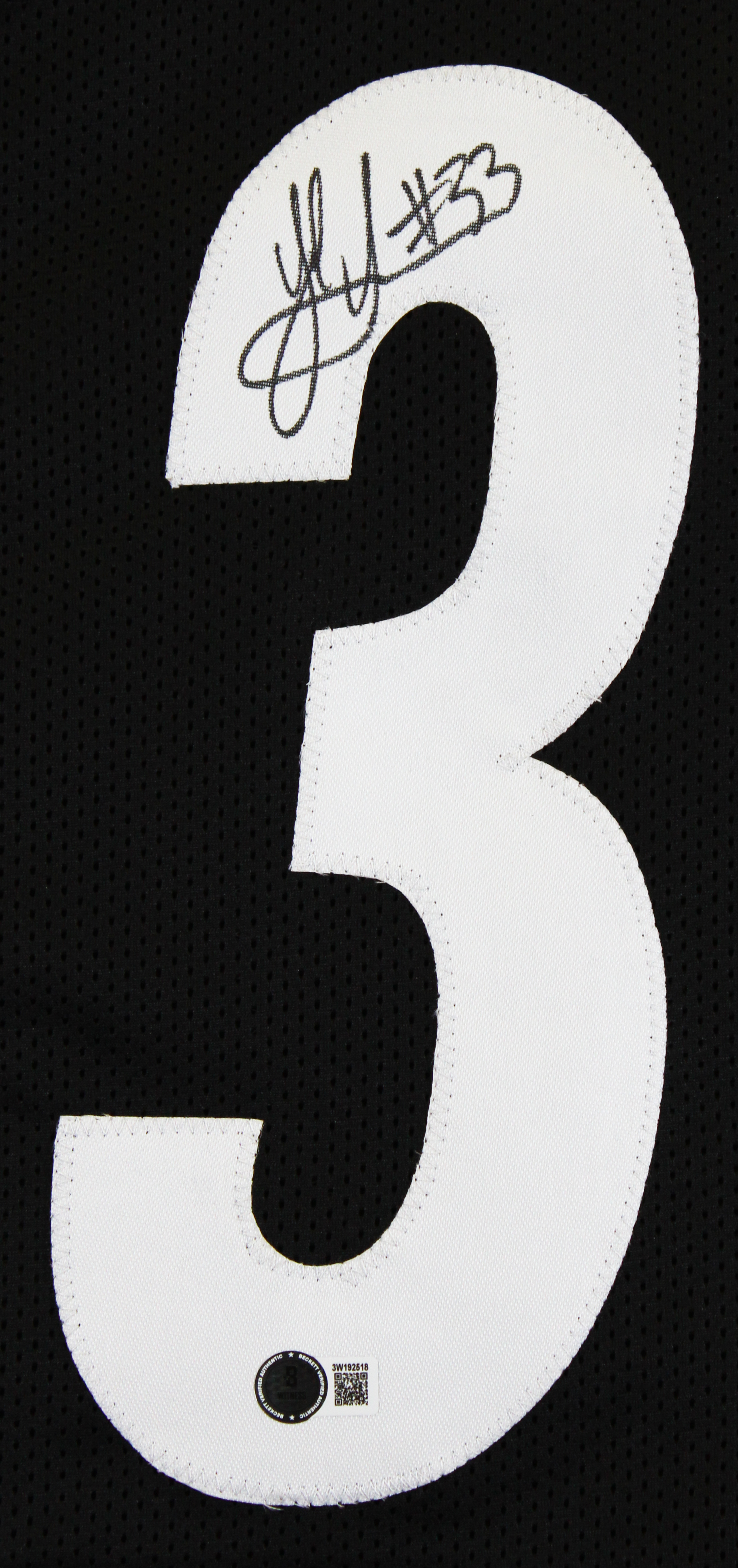 This Autographed Black Pro Style Jersey has been Personally Signed by Jack Sawyer of the Pittsburgh Steelers. This item is 100% Authentic to include a hologram by Beckett Authentication Services. This item will come with an affixed Beckett Authentication Services (BAS) authentication sticker, which includes a scannable QR code to verify authenticity. Please note that Beckett no longer provides serial-numbered COA cards, and the attached BAS sticker will serve as the complete authentication for this item. This is a BAS Witnessed Protection Program item which means a Beckett Authentication Service representative was present when this item was being signed. We conducted an autograph signing with Jack Sawyer where multiples of the same item were signed. While the photographs are representative of this item, the size, placement and strength of the signature may vary. Each item is hand signed, therefore, each autograph is unique. This item can be verified through BAS Witnessed. This is a X-Large sized, non-branded, custom-stitched Jersey.