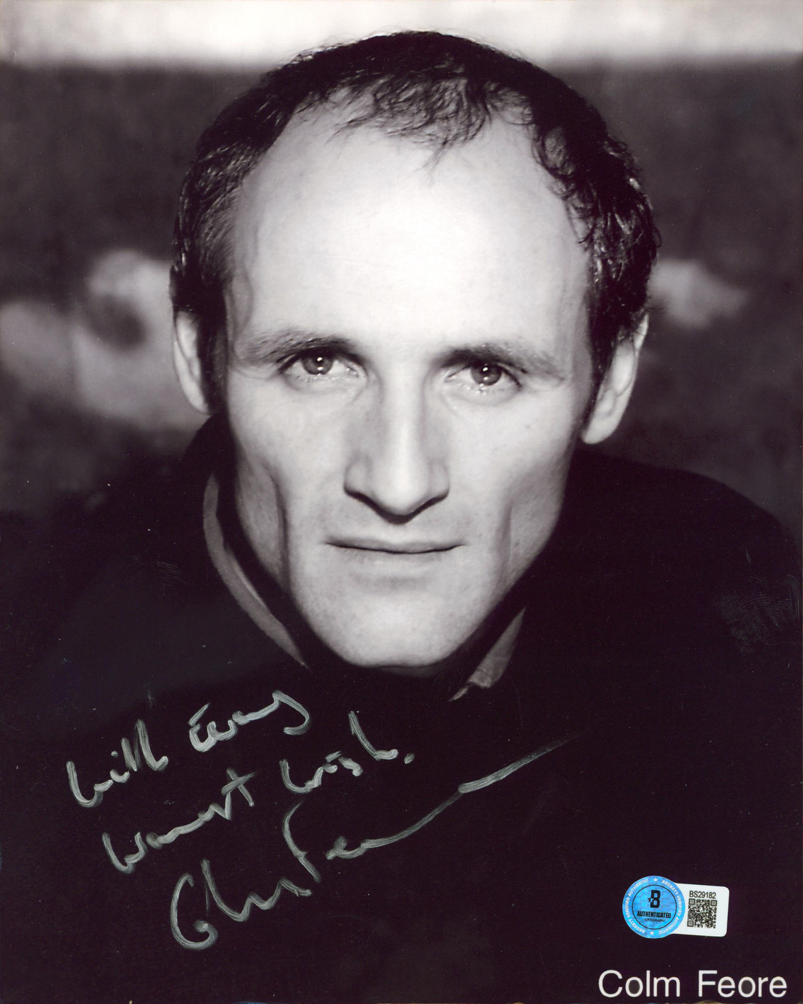 This Autographed Vertical 8x10 Photo with the inscription of "With Every Warm Wish" has been Personally Signed by Colm Feore of Riddick. This item is 100% Authentic to include a hologram by Beckett Authentication Services. This item will come with an affixed Beckett Authentication Services (BAS) authentication sticker, which includes a scannable QR code to verify authenticity. Please note that Beckett no longer provides serial-numbered COA cards, and the attached BAS sticker will serve as the complete authentication for this item. The authenticity can be verified on Beckett Authentication Services website. Normal handling wear is present.