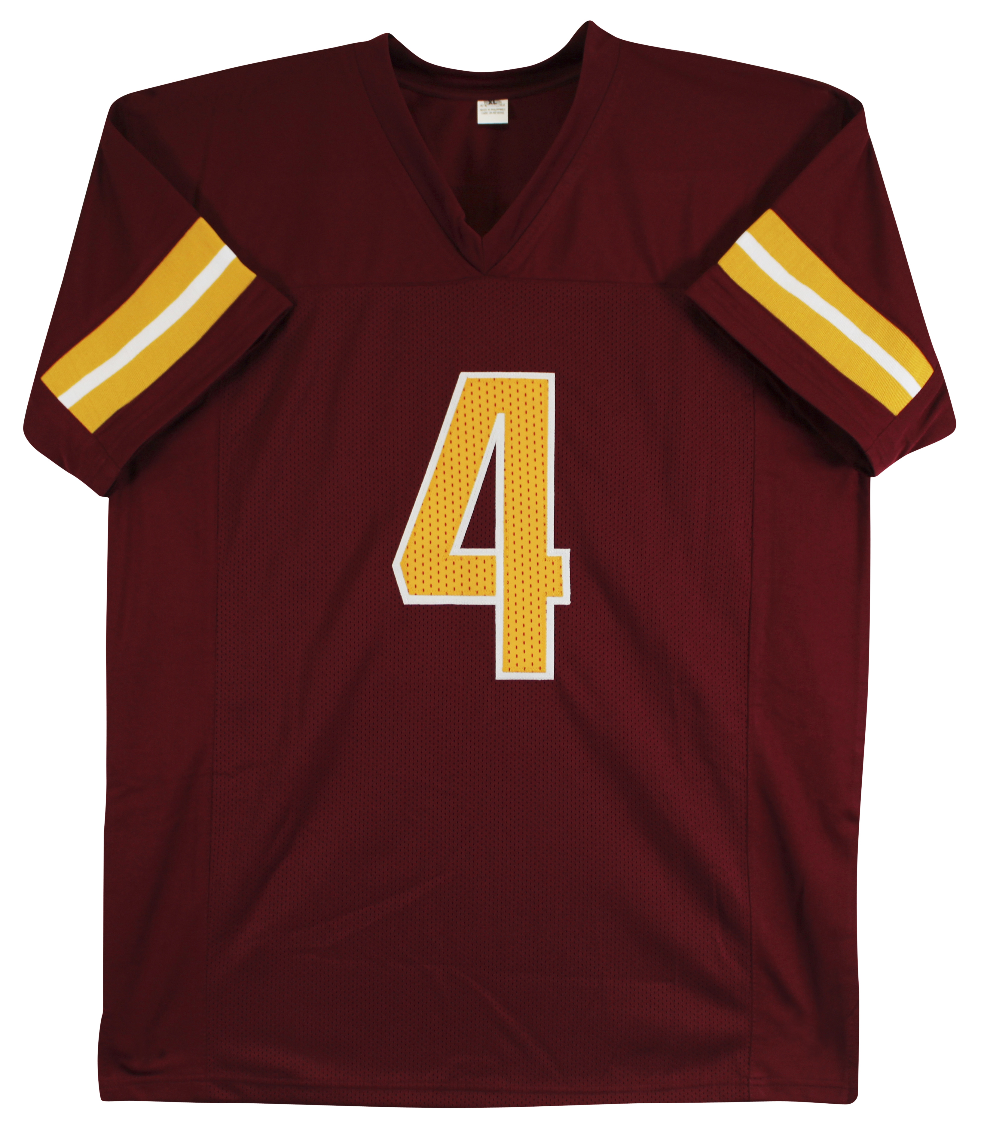 This Autographed Maroon Pro Style Jersey has been Personally Signed by Frankie Luvu of the Washington Commanders. This item is 100% Authentic to include a hologram by Beckett Authentication Services. This item will come with an affixed Beckett Authentication Services (BAS) authentication sticker, which includes a scannable QR code to verify authenticity. Please note that Beckett no longer provides serial-numbered COA cards, and the attached BAS sticker will serve as the complete authentication for this item. This is a BAS Witnessed Protection Program item which means a Beckett Authentication Service representative was present when this item was being signed. We conducted an autograph signing with Frankie Luvu where multiples of the same item were signed. While the photographs are representative of this item, the size, placement and strength of the signature may vary. Each item is hand signed, therefore, each autograph is unique. This item can be verified through BAS Witnessed. This is a X-Large sized, non-branded, custom-stitched Jersey.