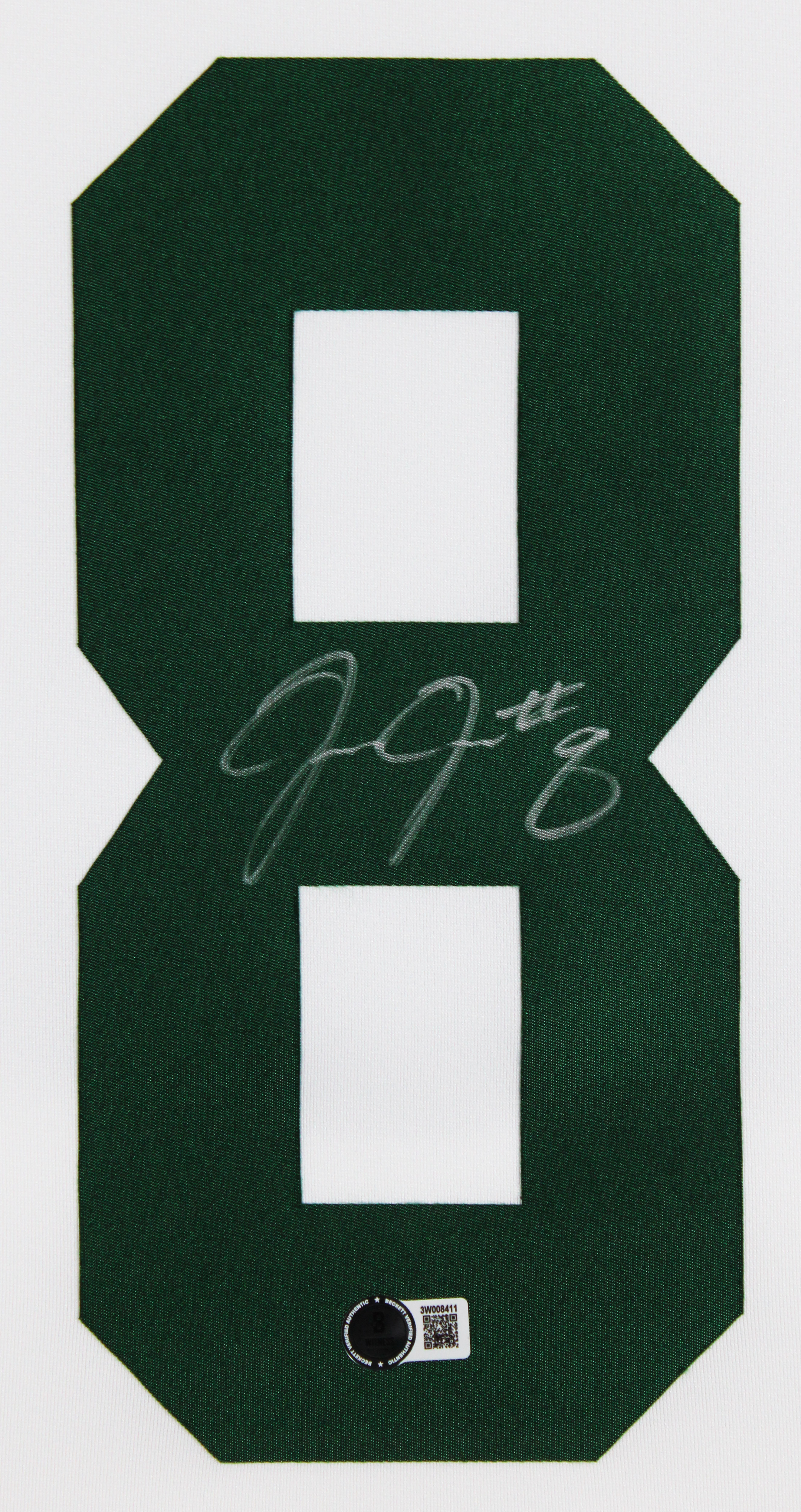 This Autographed White Nike Game Framed Jersey has been Personally Signed by Josh Jacobs of the Green Bay Packers. This item is 100% Authentic to include a hologram by Beckett Authentication Services. This item will come with an affixed Beckett Authentication Services (BAS) authentication sticker, which includes a scannable QR code to verify authenticity. Please note that Beckett no longer provides serial-numbered COA cards, and the attached BAS sticker will serve as the complete authentication for this item. This is a BAS Witnessed Protection Program item which means a Beckett Authentication Service representative was present when this item was being signed. We conducted an autograph signing with Josh Jacobs where multiples of the same item were signed. While the photographs are representative of this item, the size, placement and strength of the signature may vary. Each item is hand signed, therefore, each autograph is unique. This item can be verified through BAS Witnessed. This item has been professionally framed to overall dimensions of approximately 32 x 37 inches. Multiple sizes available. Reach out for availability. This jersey will be framed to order, it will take approximately 3-4 business days from purchase date for it to ship.