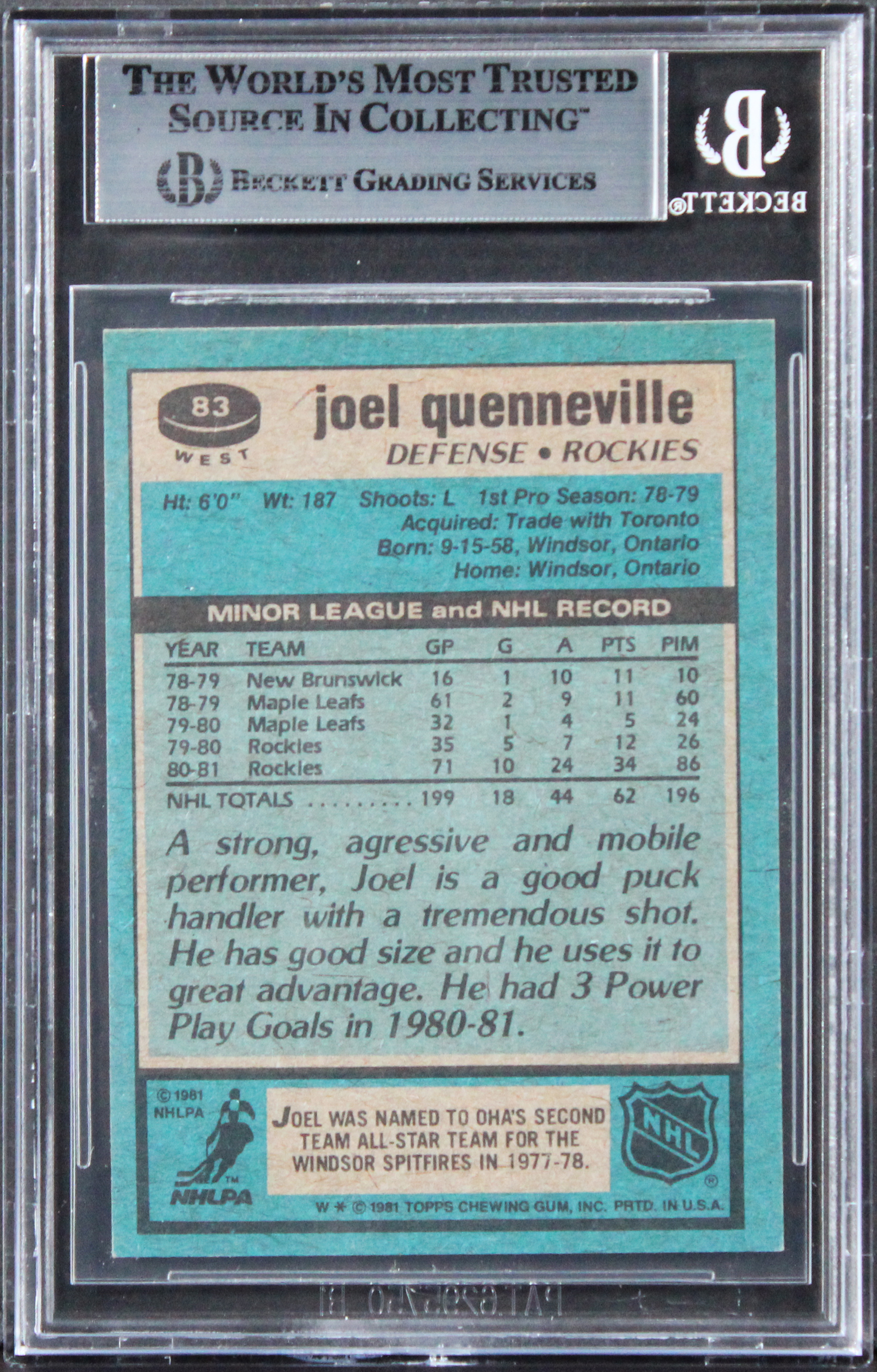This Autographed 1981 Topps #W83 Card has been Personally Signed by Joel Quenneville of the Colorado Rockies. This item is 100% Authentic, it comes slabbed and authenticated by Beckett Authentication Services. The authenticity can be verified on Beckett Authentication Services website.
