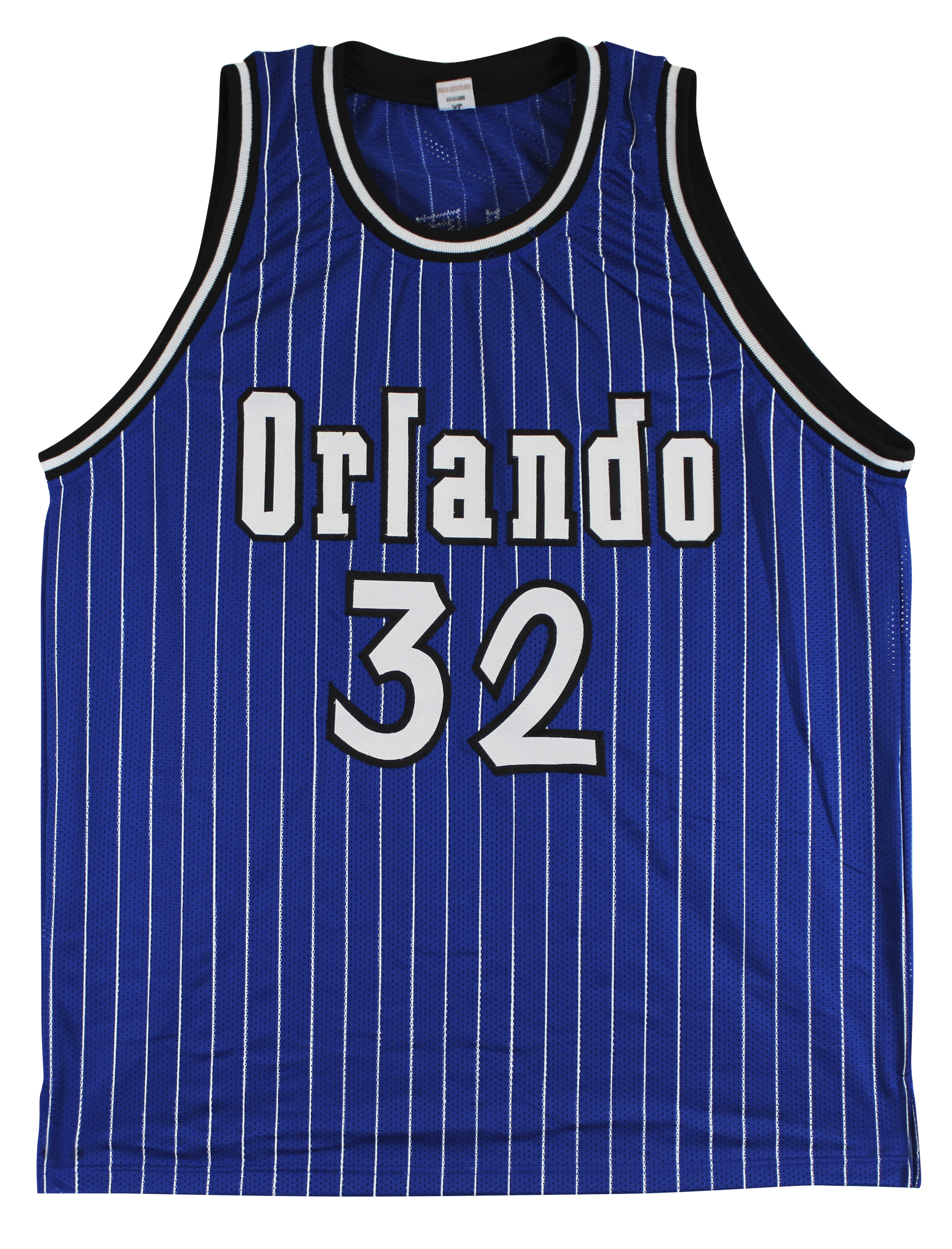 This Autographed Blue Pro Style Jersey has been Personally Signed by Shaquille O'Neal of the Orlando Magic. This item is 100% Authentic to include a hologram by Beckett Authentication Services. This item will come with an affixed Beckett Authentication Services (BAS) authentication sticker, which includes a scannable QR code to verify authenticity. Please note that Beckett no longer provides serial-numbered COA cards, and the attached BAS sticker will serve as the complete authentication for this item. This is a BAS Witnessed Protection Program item which means a Beckett Authentication Service representative was present when this item was being signed. We conducted an autograph signing with Shaquille O'Neal where multiples of the same item were signed. While the photographs are representative of this item, the size, placement and strength of the signature may vary. Each item is hand signed, therefore, each autograph is unique. This item can be verified through BAS Witnessed. This is a X-Large sized, non-branded, custom-stitched Jersey.