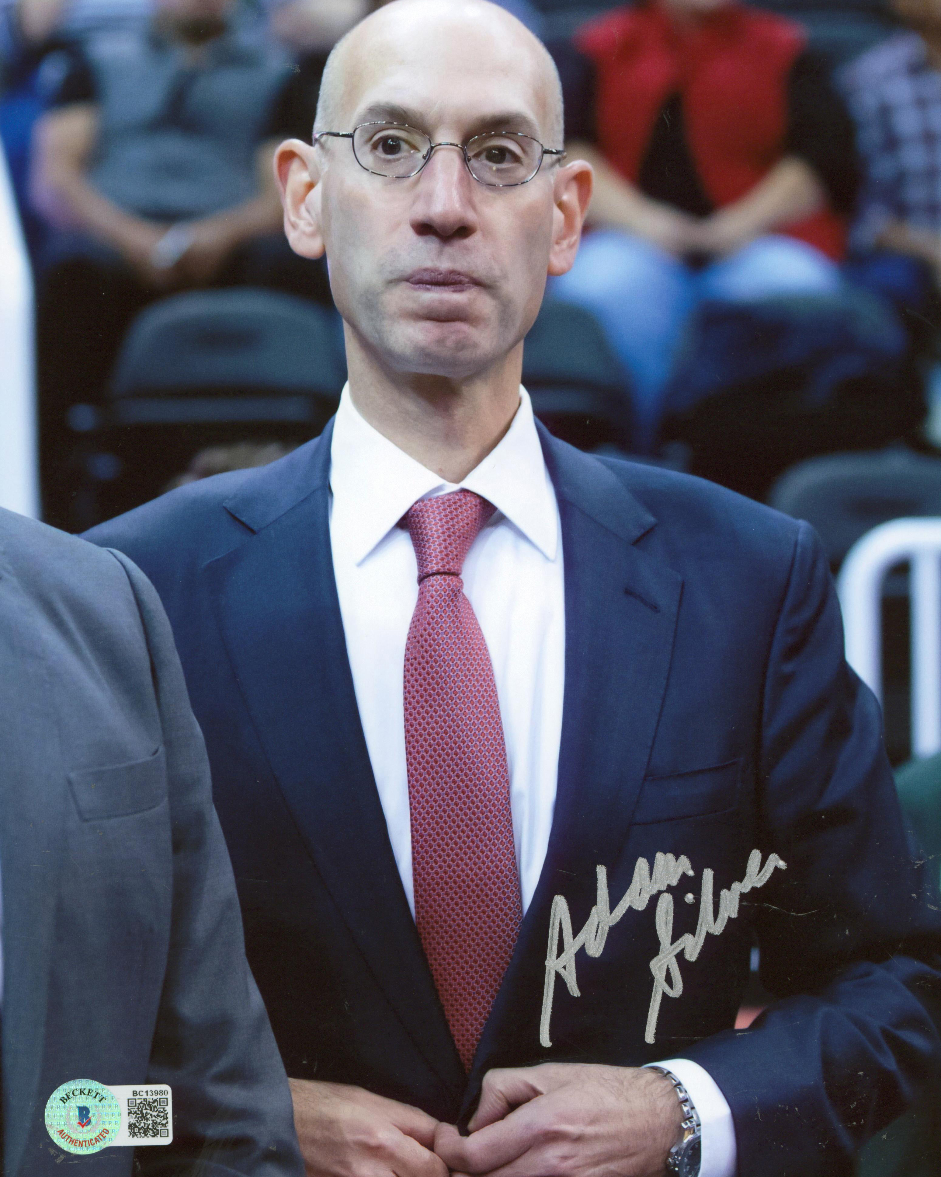 This Autographed NBA Vertical 8x10 Photo has been Personally Signed by Adam SIlver. This item is 100% Authentic to include a hologram by Beckett Authentication Services. This item will come with an affixed Beckett Authentication Services (BAS) authentication sticker, which includes a scannable QR code to verify authenticity. Please note that Beckett no longer provides serial-numbered COA cards, and the attached BAS sticker will serve as the complete authentication for this item. We have multiples of this same item. While the photographs are representative of this item, the size, placement and strength of the signature may vary. Each item is hand signed, therefore, each autograph is unique.